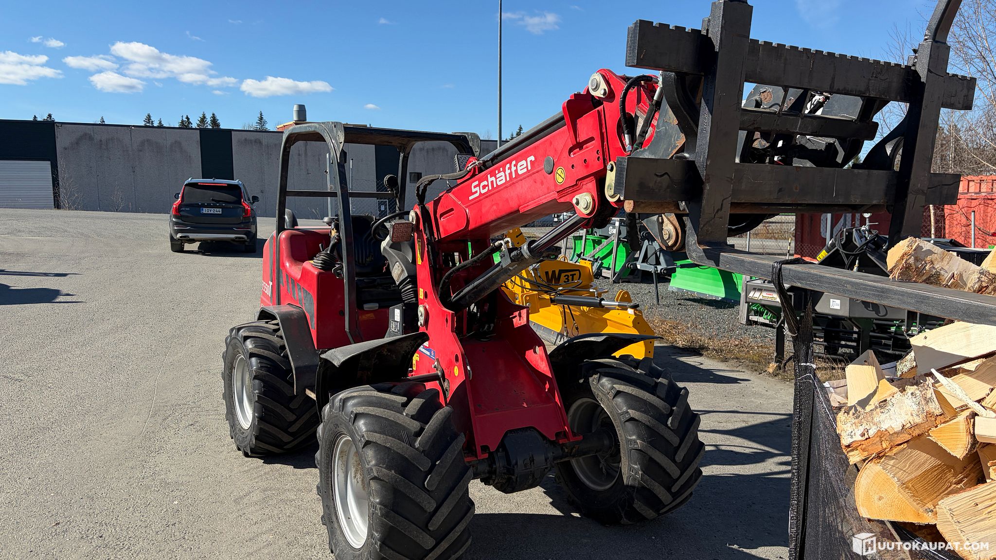 Working Schäffer for auction, low model with telescopic boom. Euro hitch.