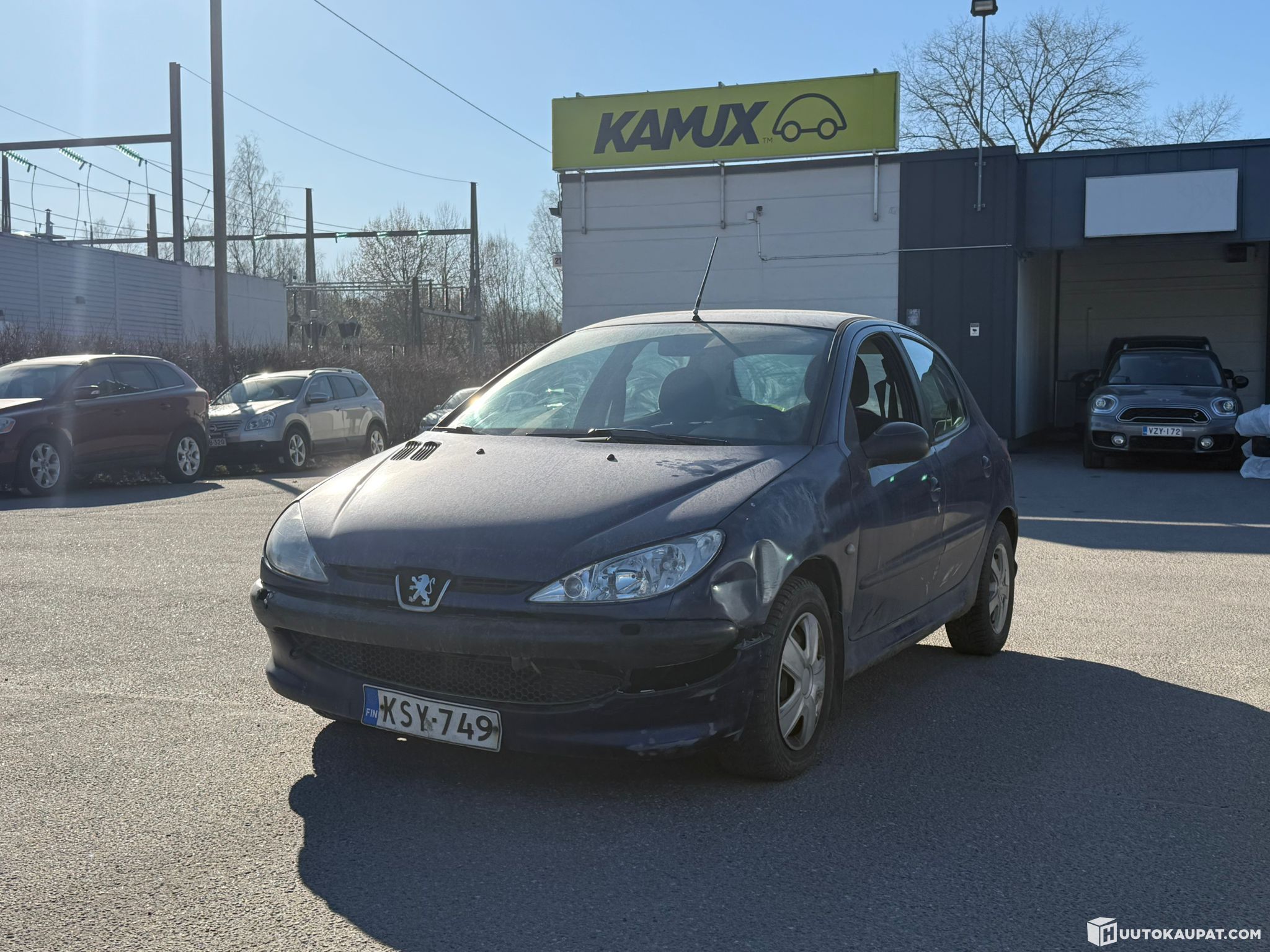 4‑door Peugeot 206 for sale for repair / for parts at auction with an automatic gearbox. The car was driven from Turku city centre to Turku Kamux for a c. 4–5 km test drive, during which the gearbox appeared to be working but the engine did not seem to have full power. The bodywork and interior are in poor condition. See the defects / missing items section for further details.