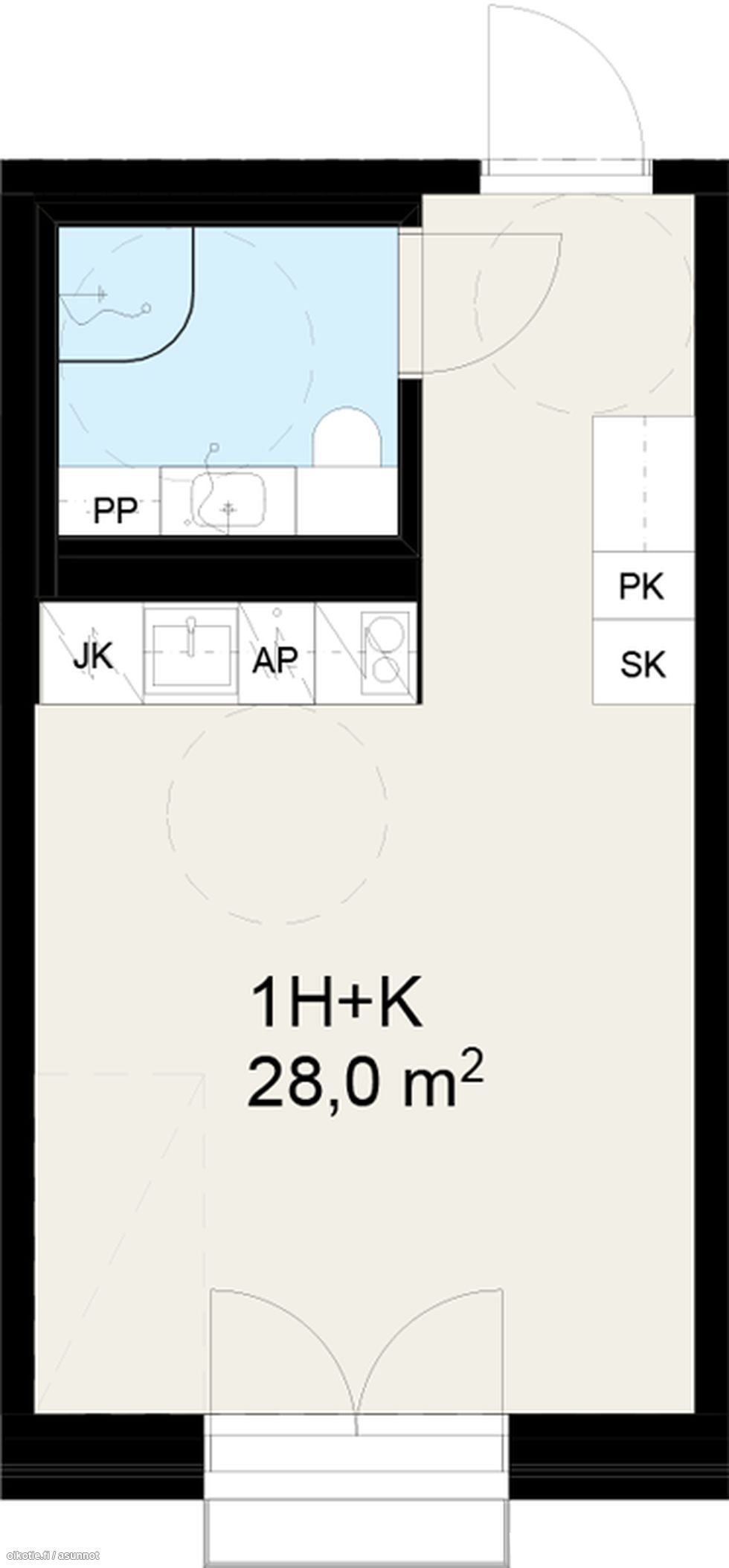 Layout: Studio + kitchenette + French balcony