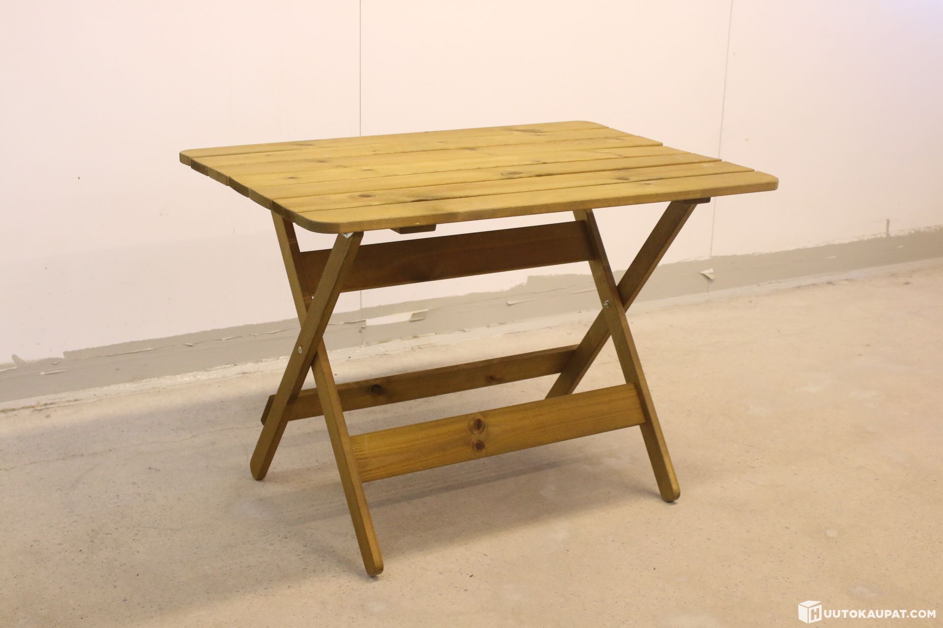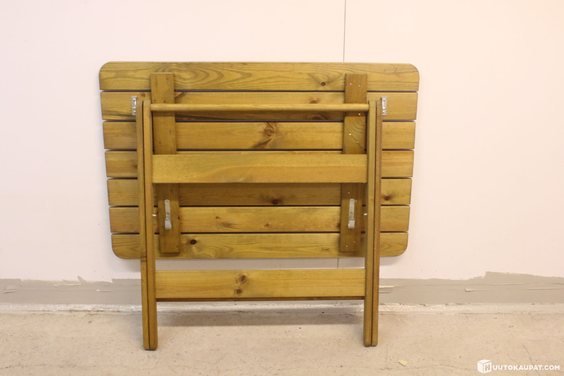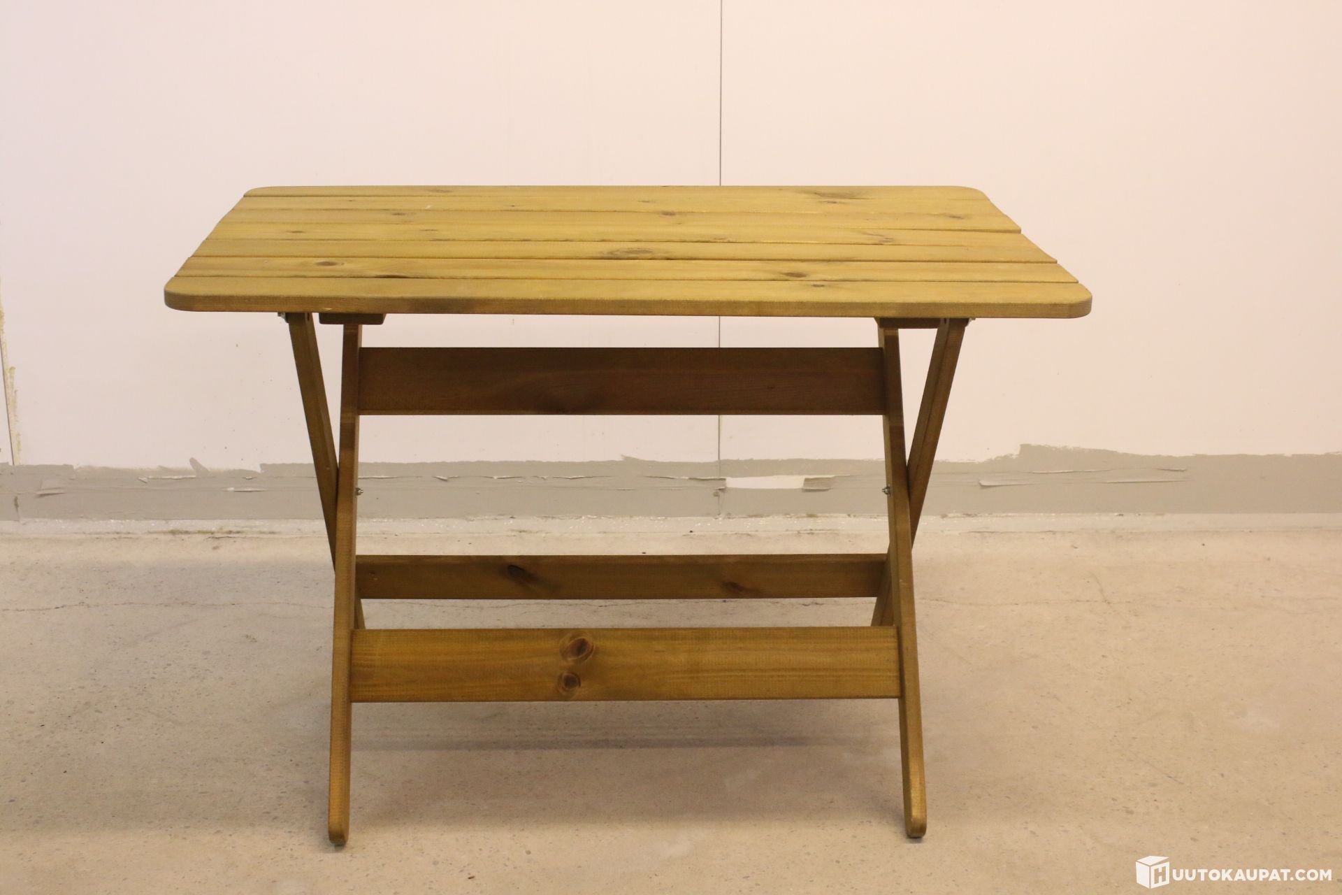 For sale: a practical and tidy wooden terrace table. The table is sturdy in construction and is ideal for outdoor use on a terrace, balcony or summer cottage.
