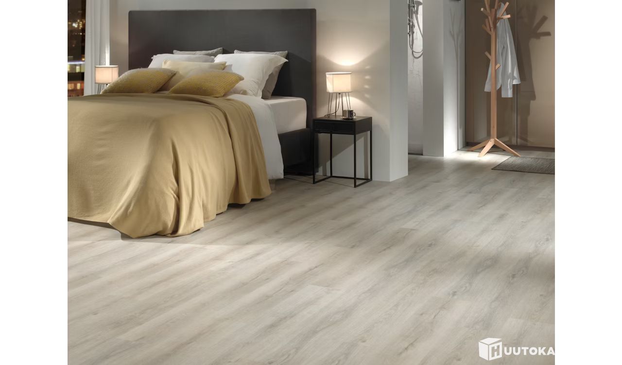 The stone‑composite RCB vinyl is rigid, water‑resistant and easy to clean. It can be safely installed in different rooms of the home. The plank is suitable for installation with water‑based or screed‑embedded underfloor heating. Compared with traditional vinyl planks, the stone composite is less sensitive to heat and direct sunlight. The reduced risk of thermal expansion allows installation in rooms with large windows and strong sunlight.