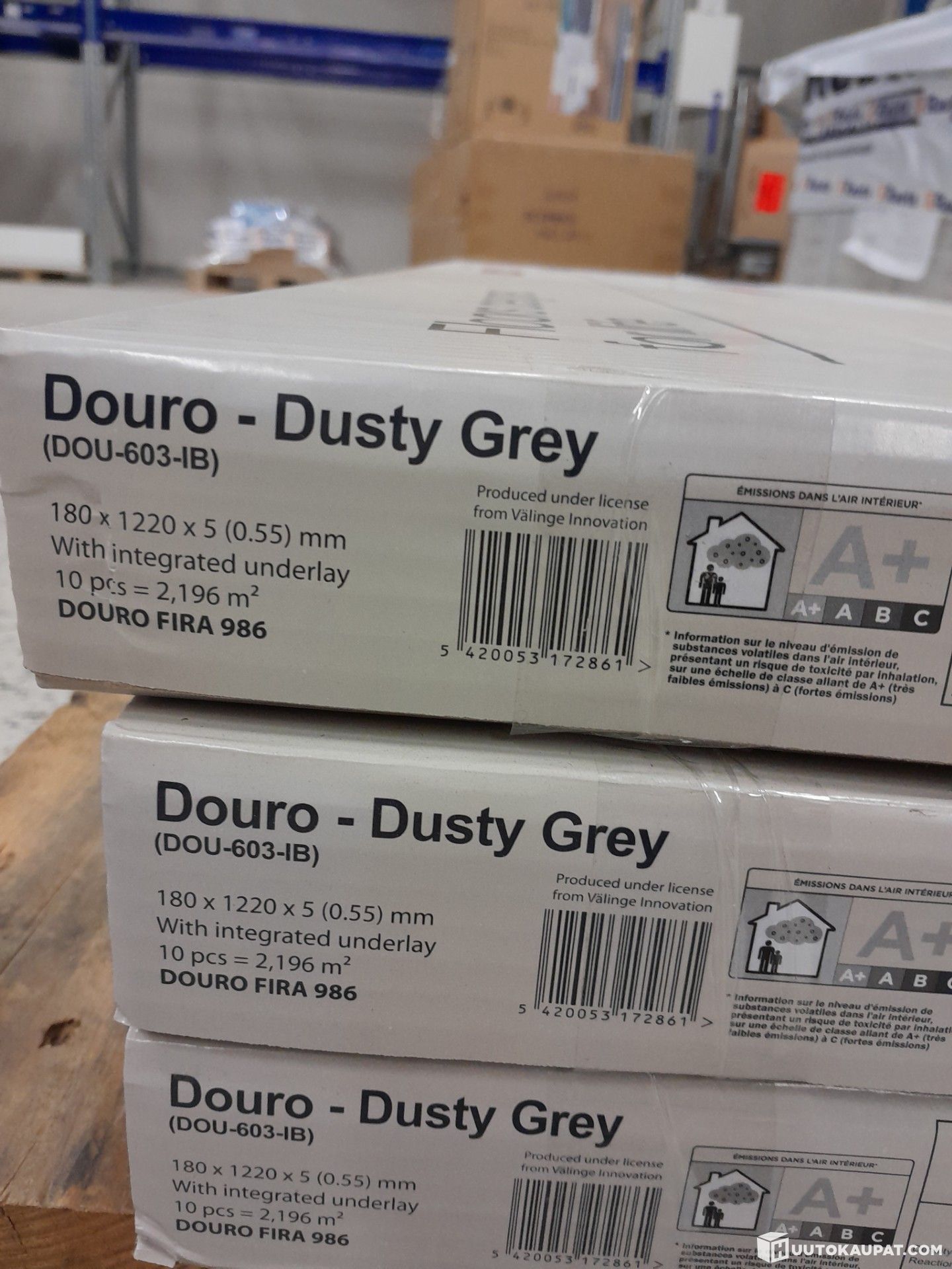 Lot of 9 packs of elegant grey‑toned Douro Dusty Grey vinyl plank.