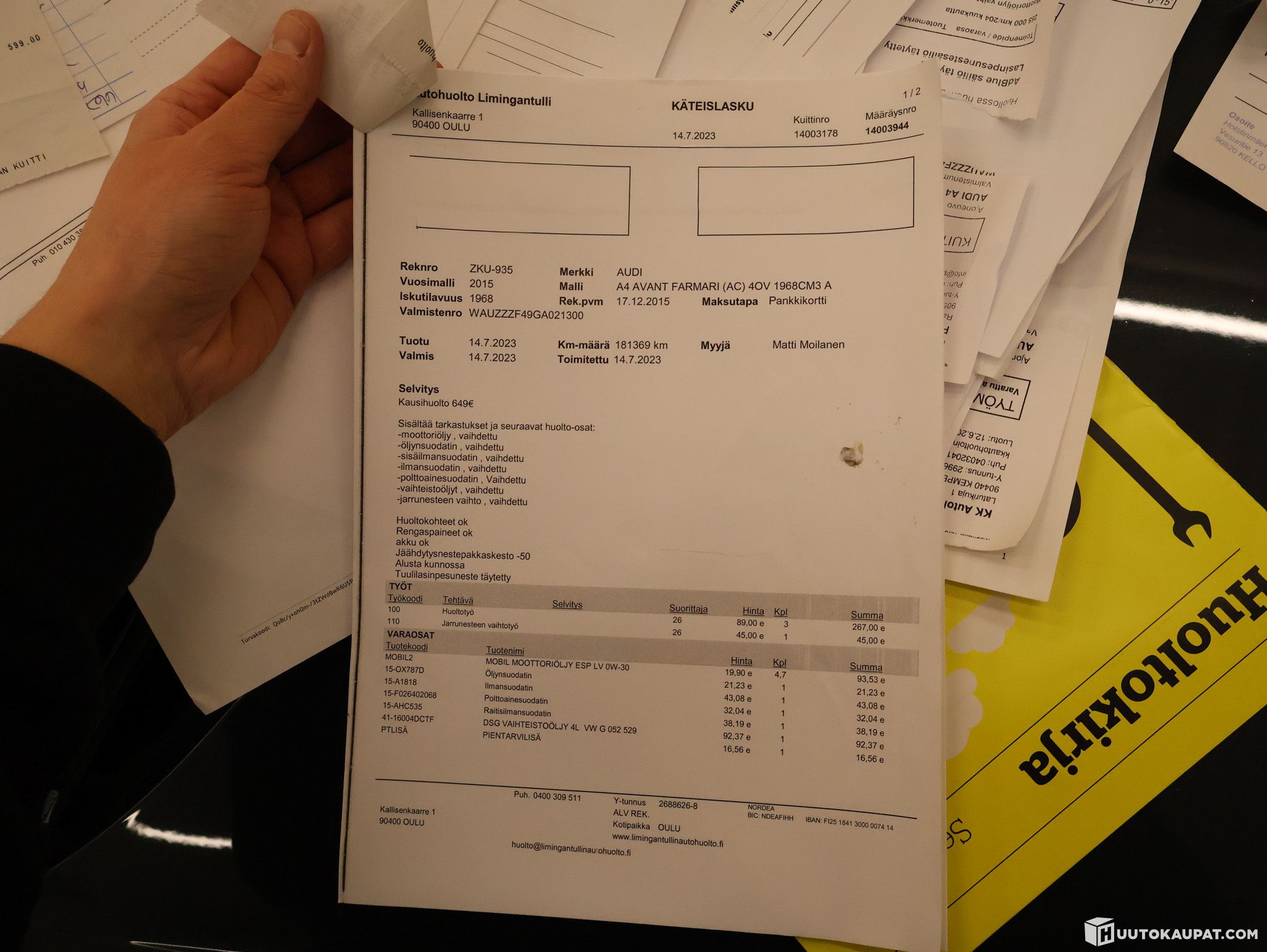 - CAR PICKUP: AUTOHUOLTO T. LAHTINEN - FONSEENINTIE 6, 00370 ESPOO - DURING OPENING HOURS WEEKDAYS 08:00–17:00