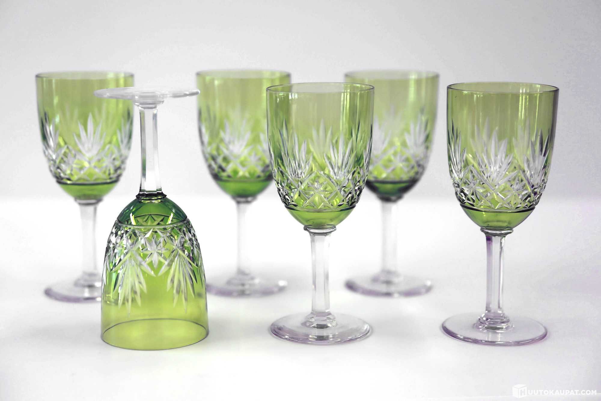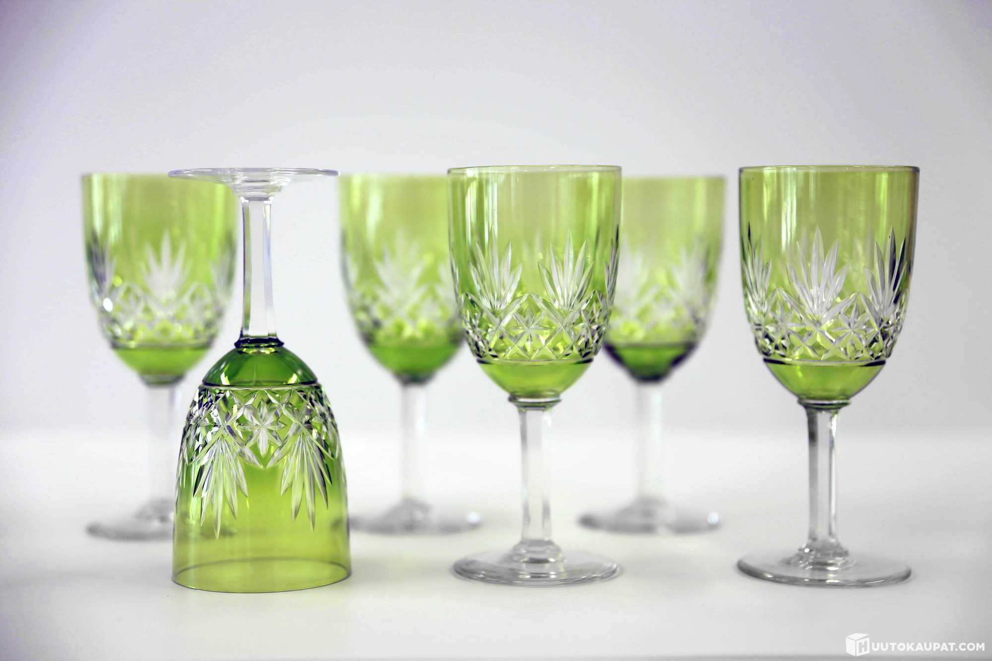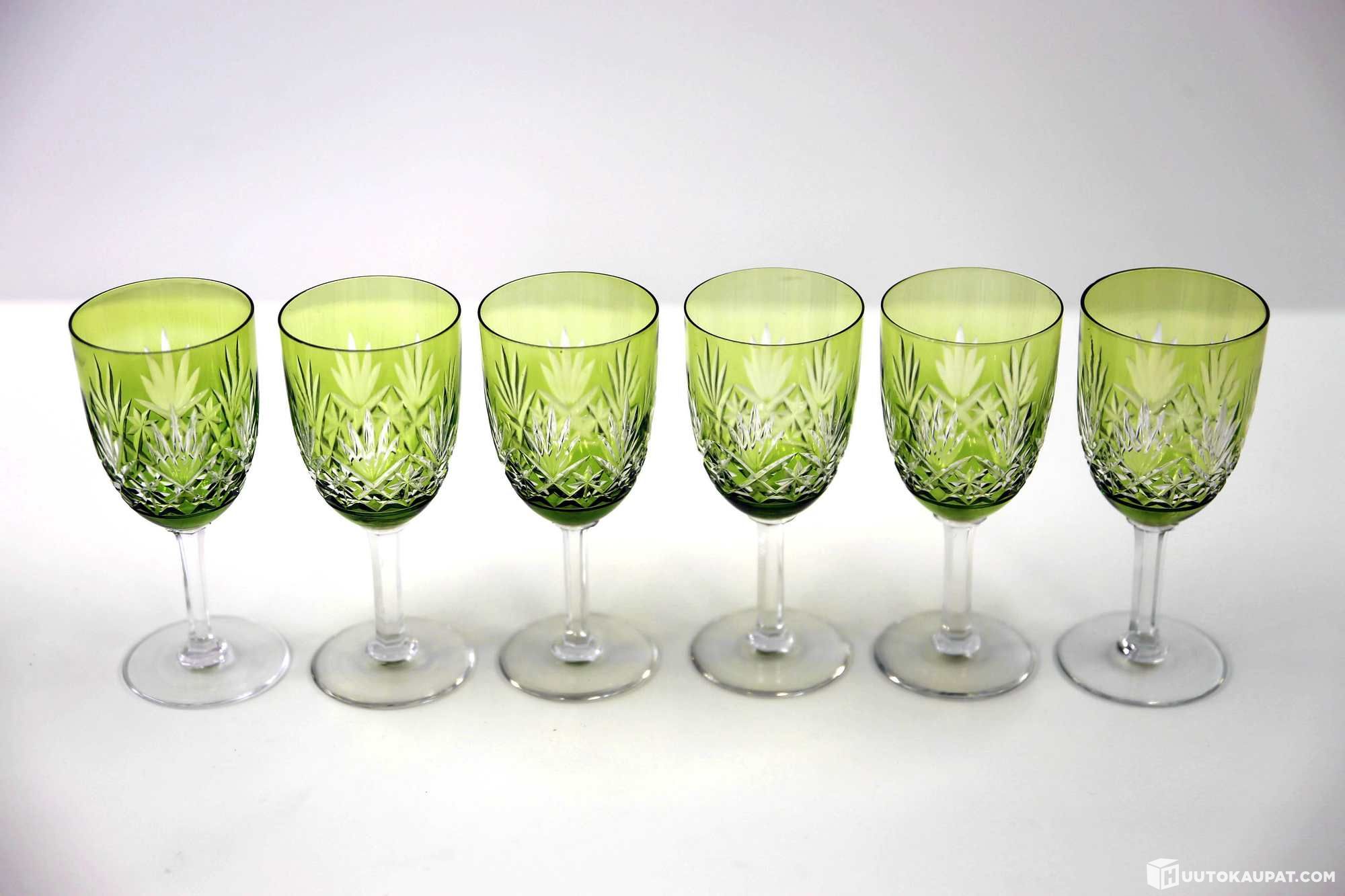 Green crystal glasses, 6 pcs