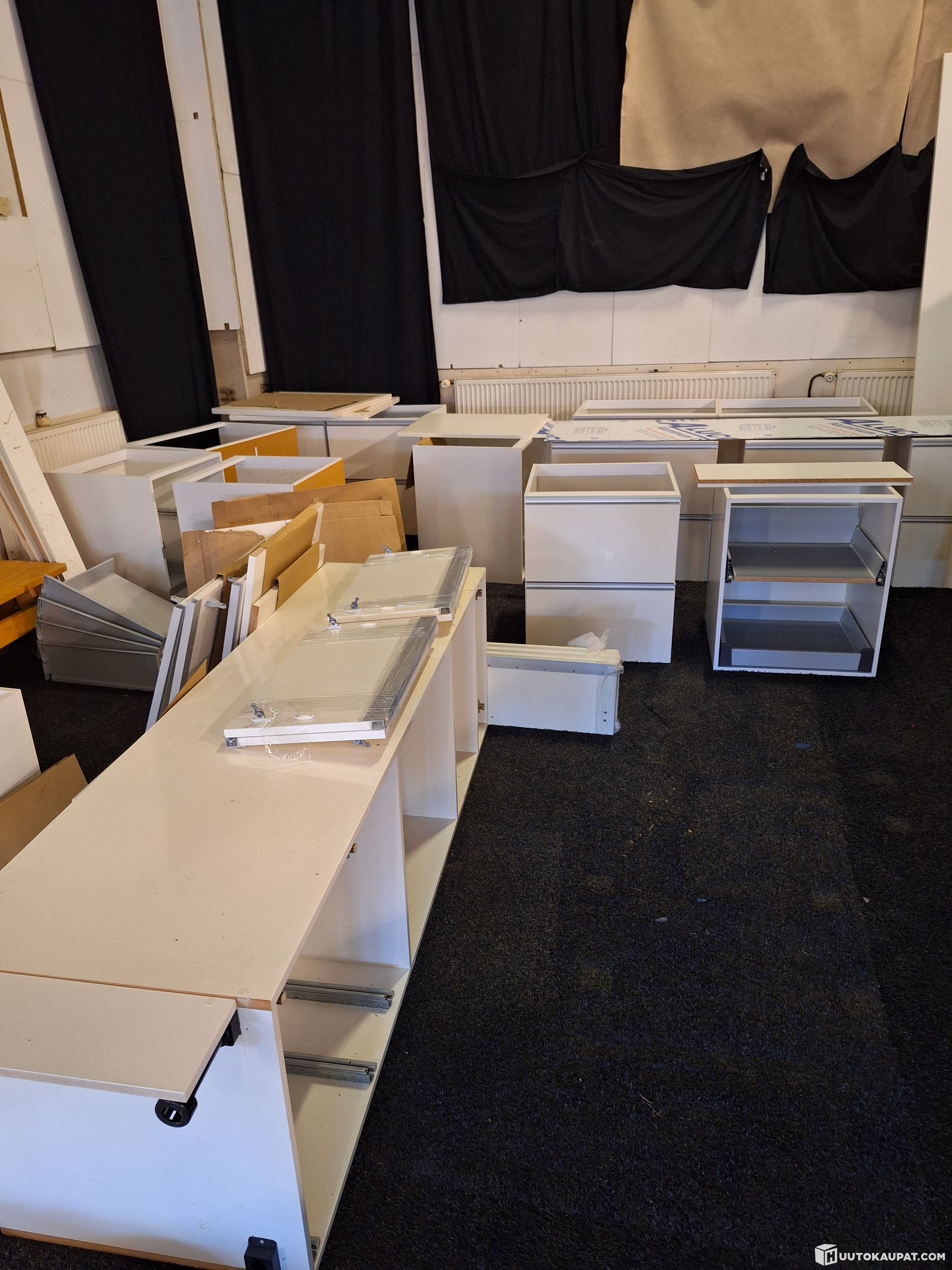 The units are from a showroom and have been dismantled for storage so that the cabinet and drawer carcasses remain assembled.