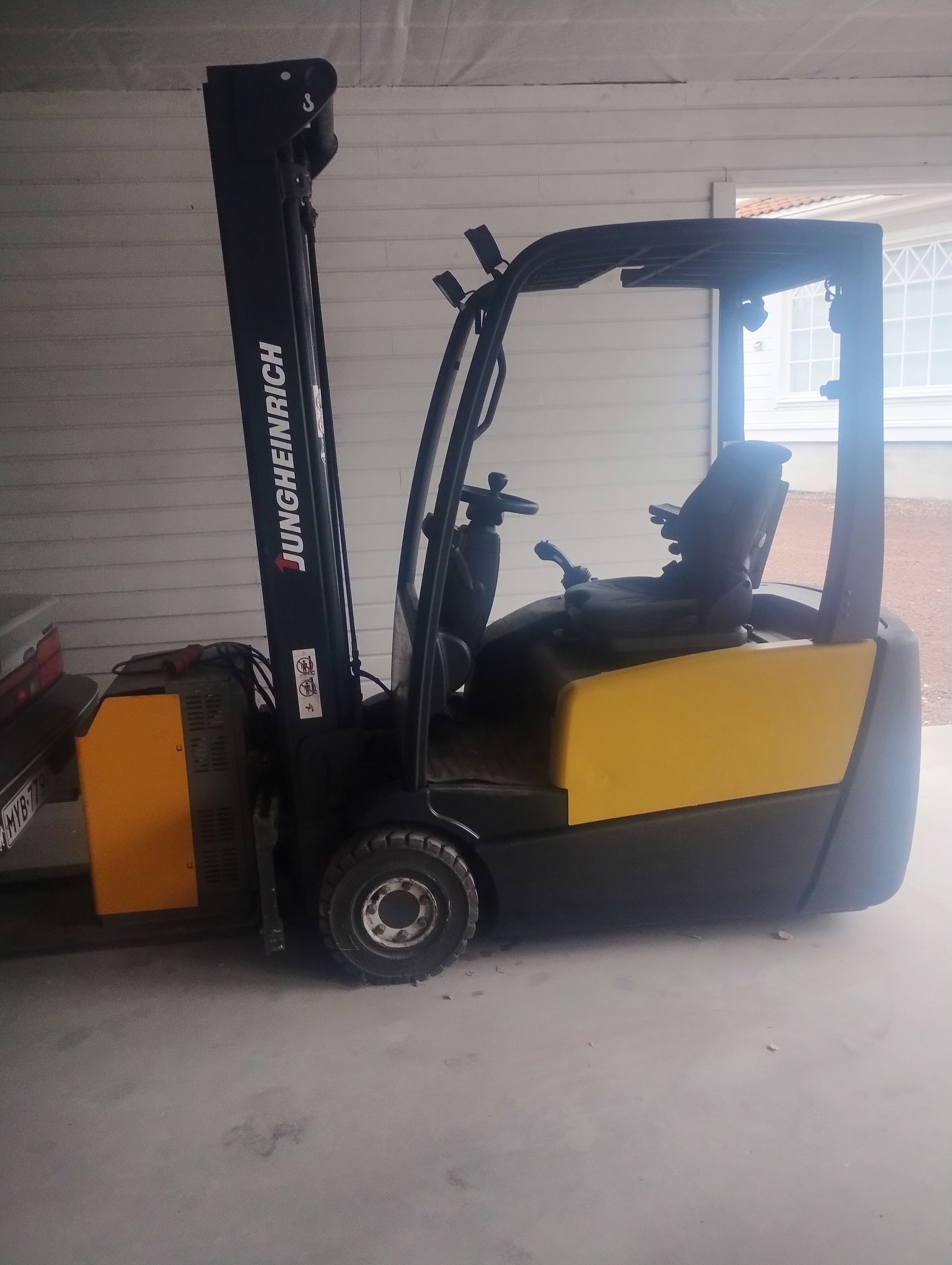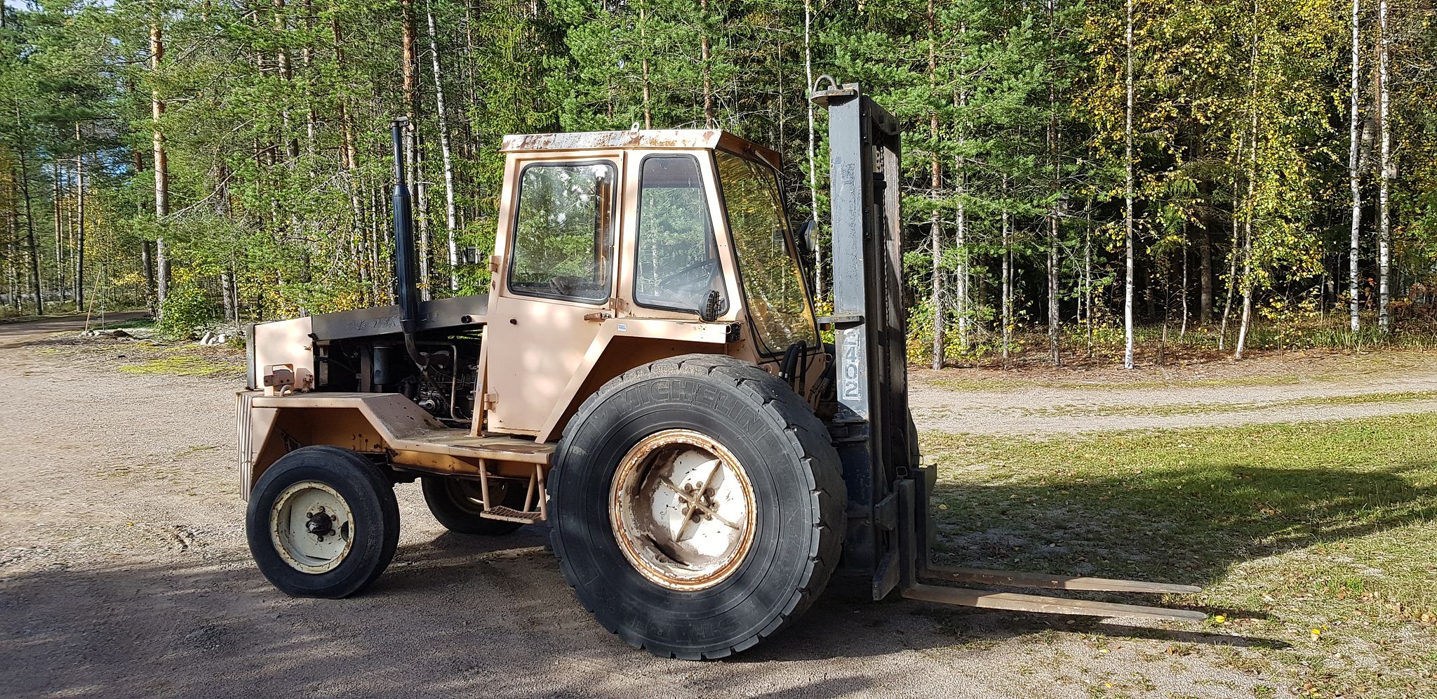 Ready-to-drive forklift. Engine overhaul carried out 50 hours ago according to the previous owner. Lights and an error code have been flashing on the panel during our ownership but have not affected driving. According to the previous owner, it happened to them too. Plexiglass window. Slight leak from the roof in rain. Not repaired or further checked. Sold as seen. Price incl. VAT. Still used weekly, so additional hours may be added.