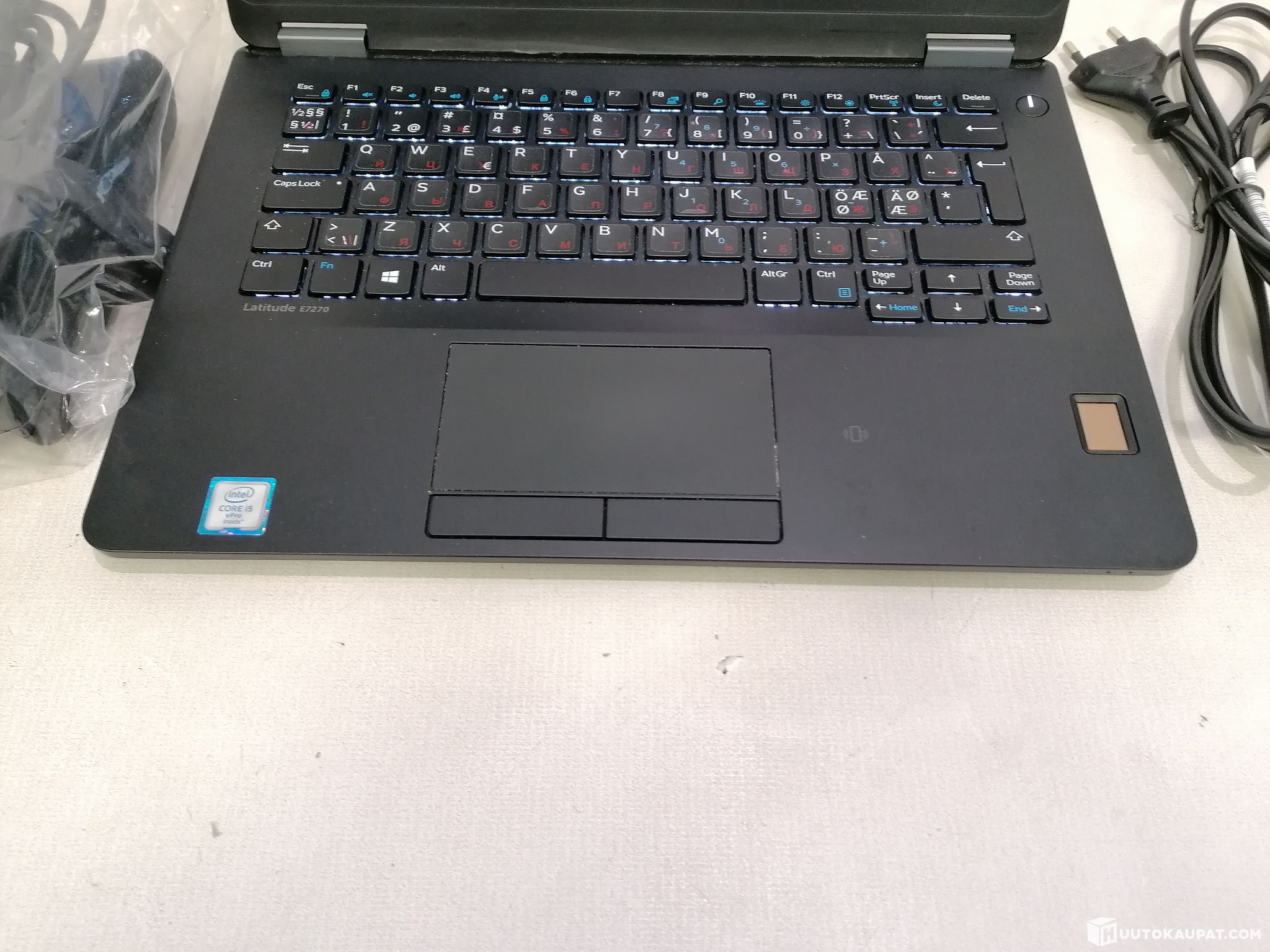 Finnish keyboard layout; keys also have stickers attached with Cyrillic characters.