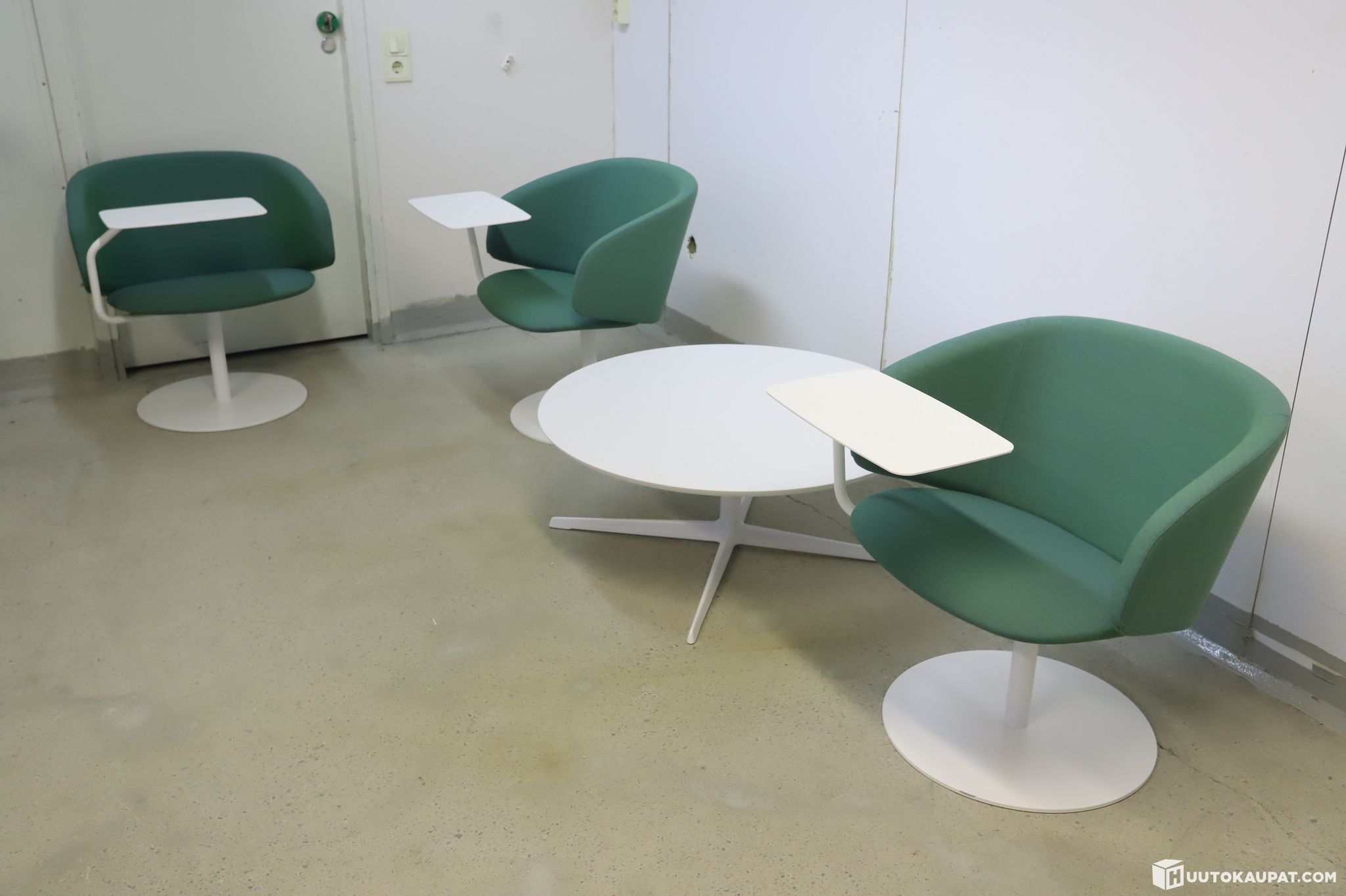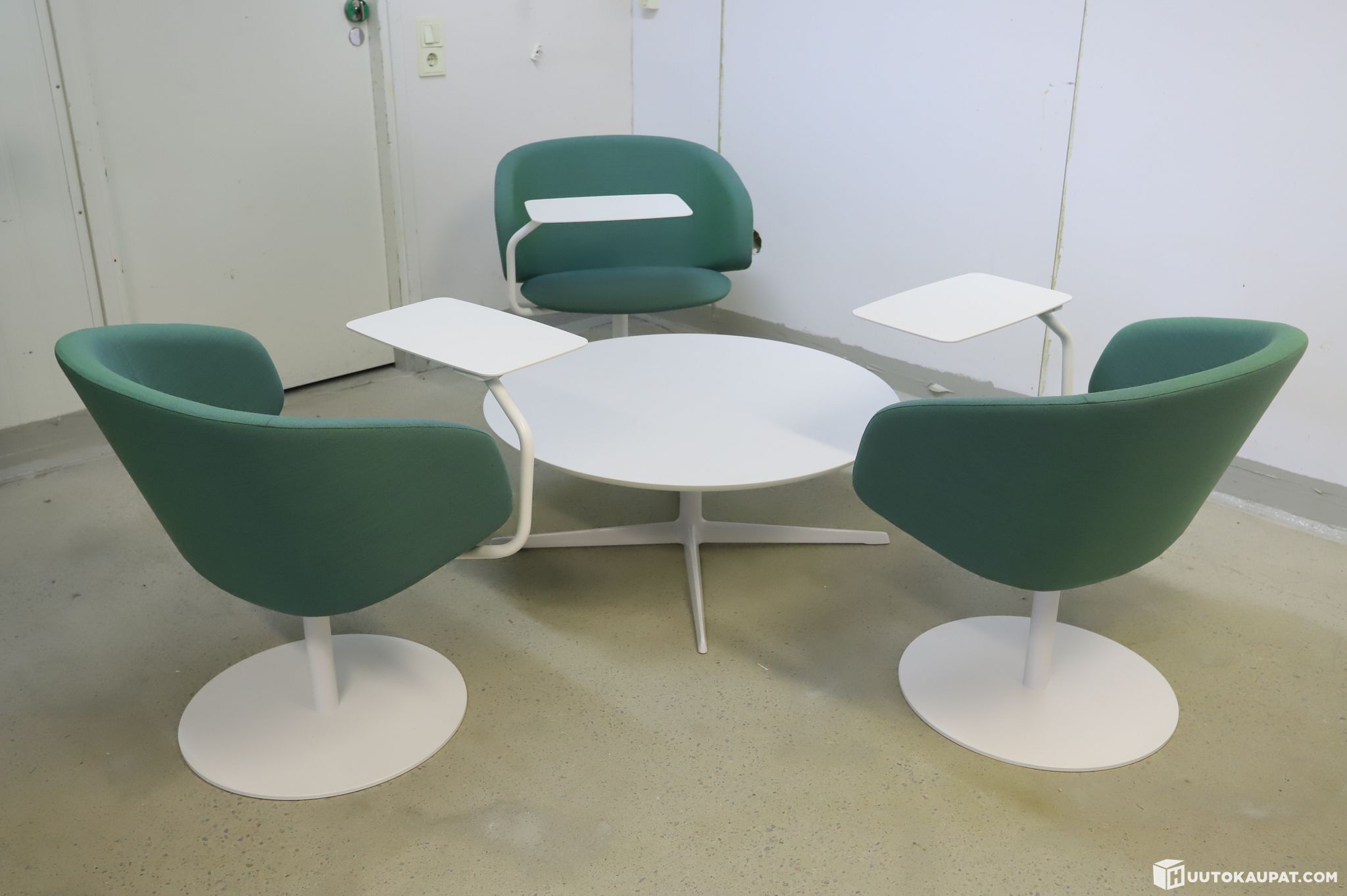 Really well‑maintained Martela reception furniture for sale. Includes three Martela Sola lobby chairs and one Arper Fred coffee table.
