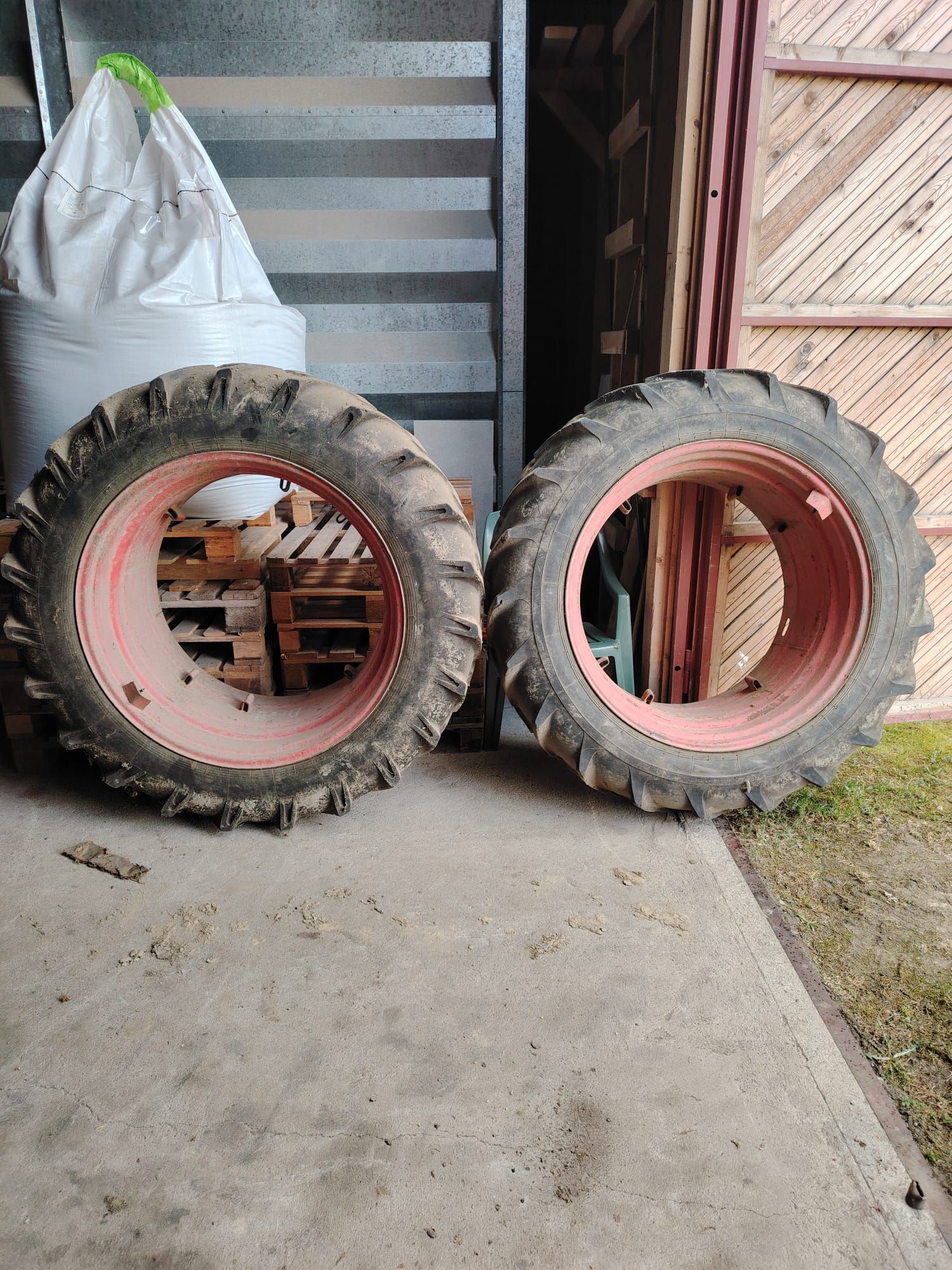 Used pair of wheels. Chains missing.