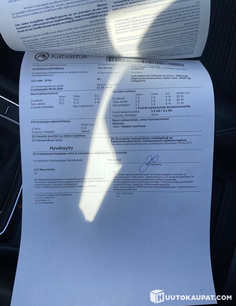 The vehicle must be collected within 7 days of the auction ending unless otherwise agreed - Huutokaupat.com.