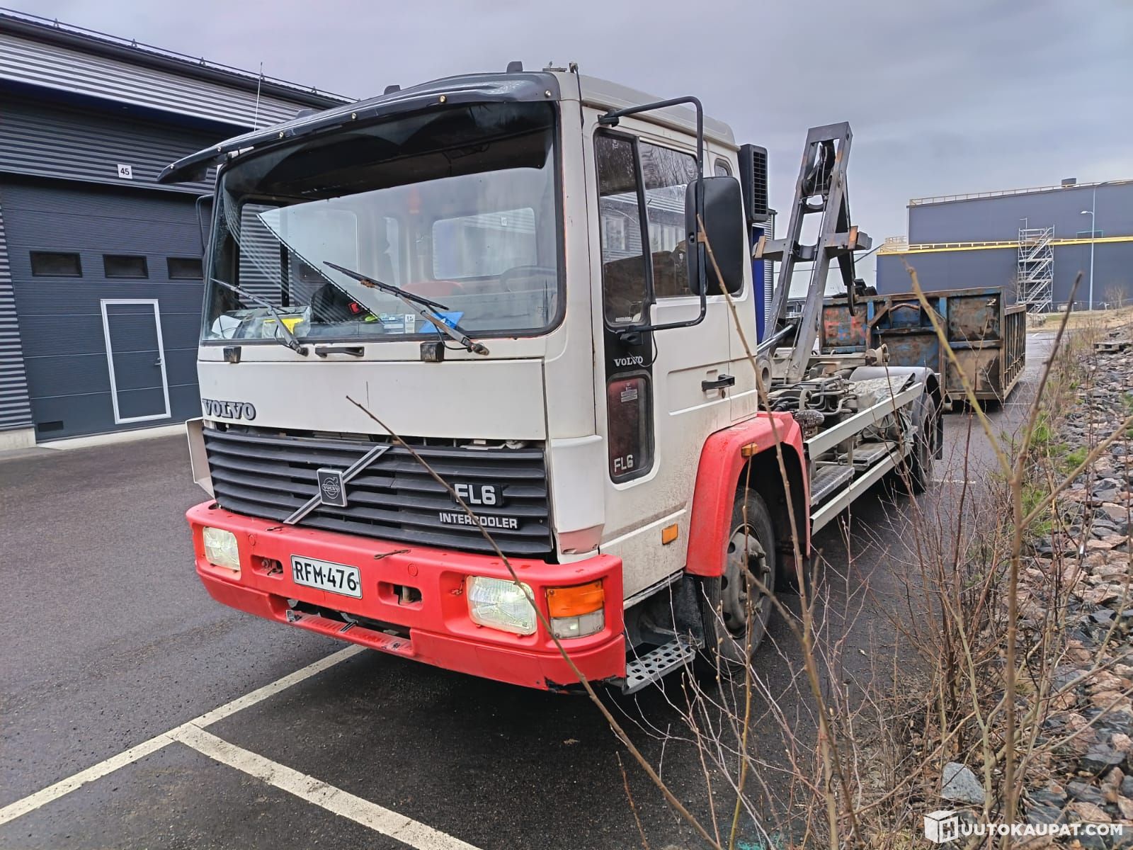 Volvo FL6, 1991 model, hook-lift truck. The most recent major service was carried out in November 2025. Includes the tyres shown below, which allow driving in winter if necessary. Normal wear to the interior and some marks on the exterior. Moves well forwards and backwards.