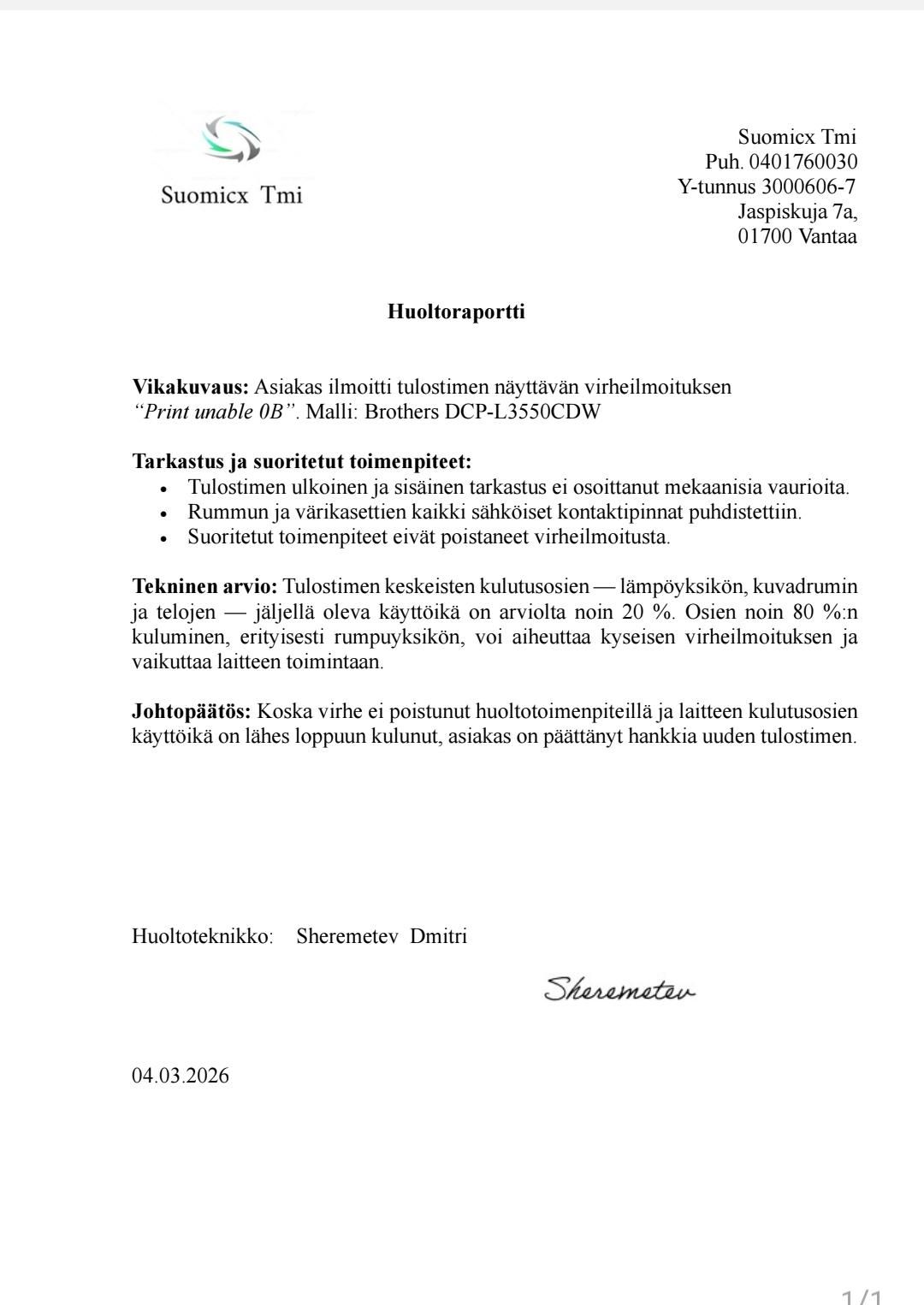 Brother DCP-L3550CDW – not working (error 0B), Helsinki