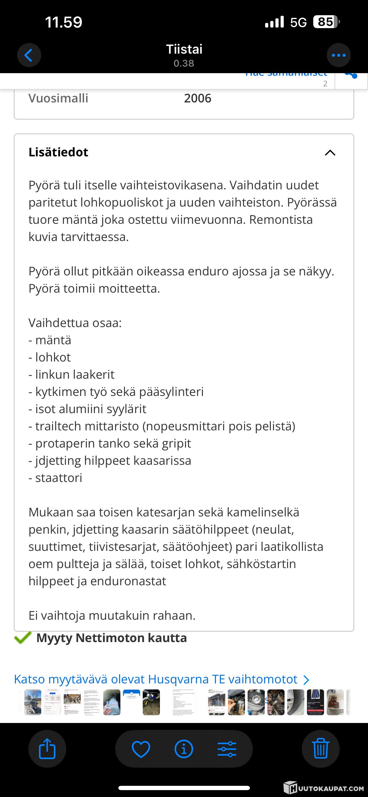 Motored Oy lists, Huutokaupat.com sells