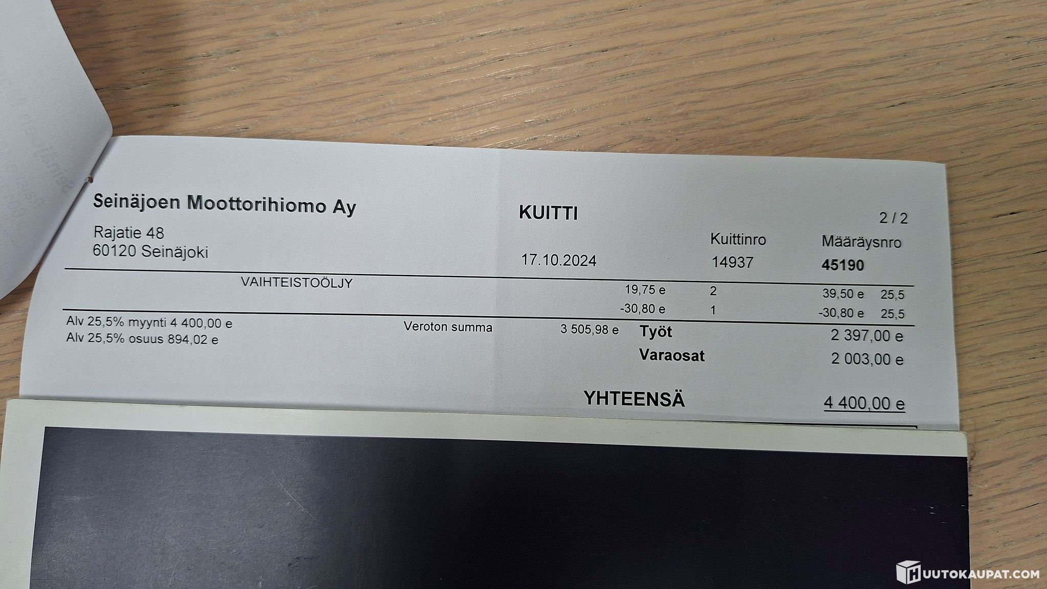16 October 2024: Oil consumption repair + timing belt kit + spark plugs / gearbox oil (receipt €4,400!)