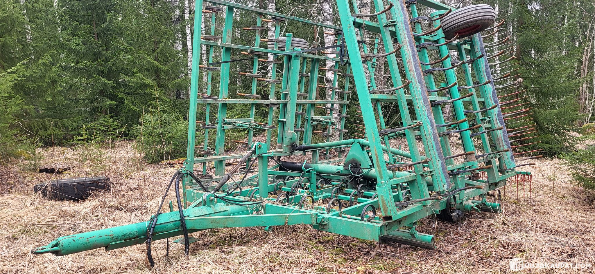 Lightly used with good, nearly unworn steel tines, 7-row, 2-section tine harrow. Someone once extended it by 2 m. Now, if I recall correctly, 9.5 m.