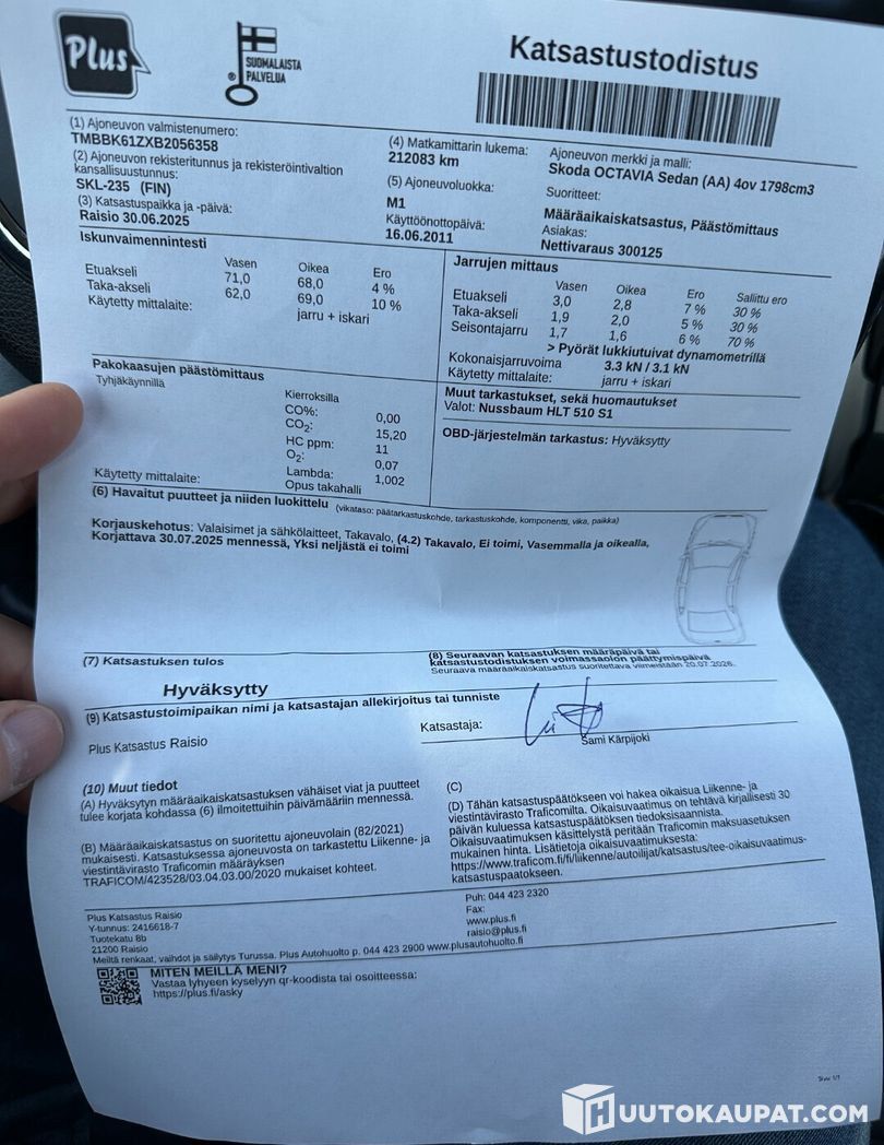 The vehicle must be collected within 7 days of the auction ending unless otherwise agreed - Huutokaupat.com.