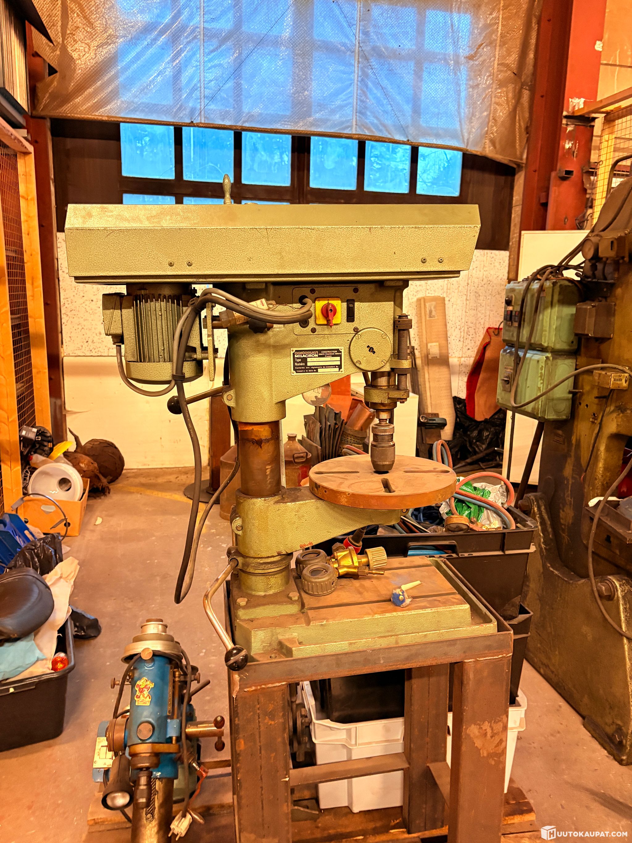 Heavy-duty belt-driven column drill.