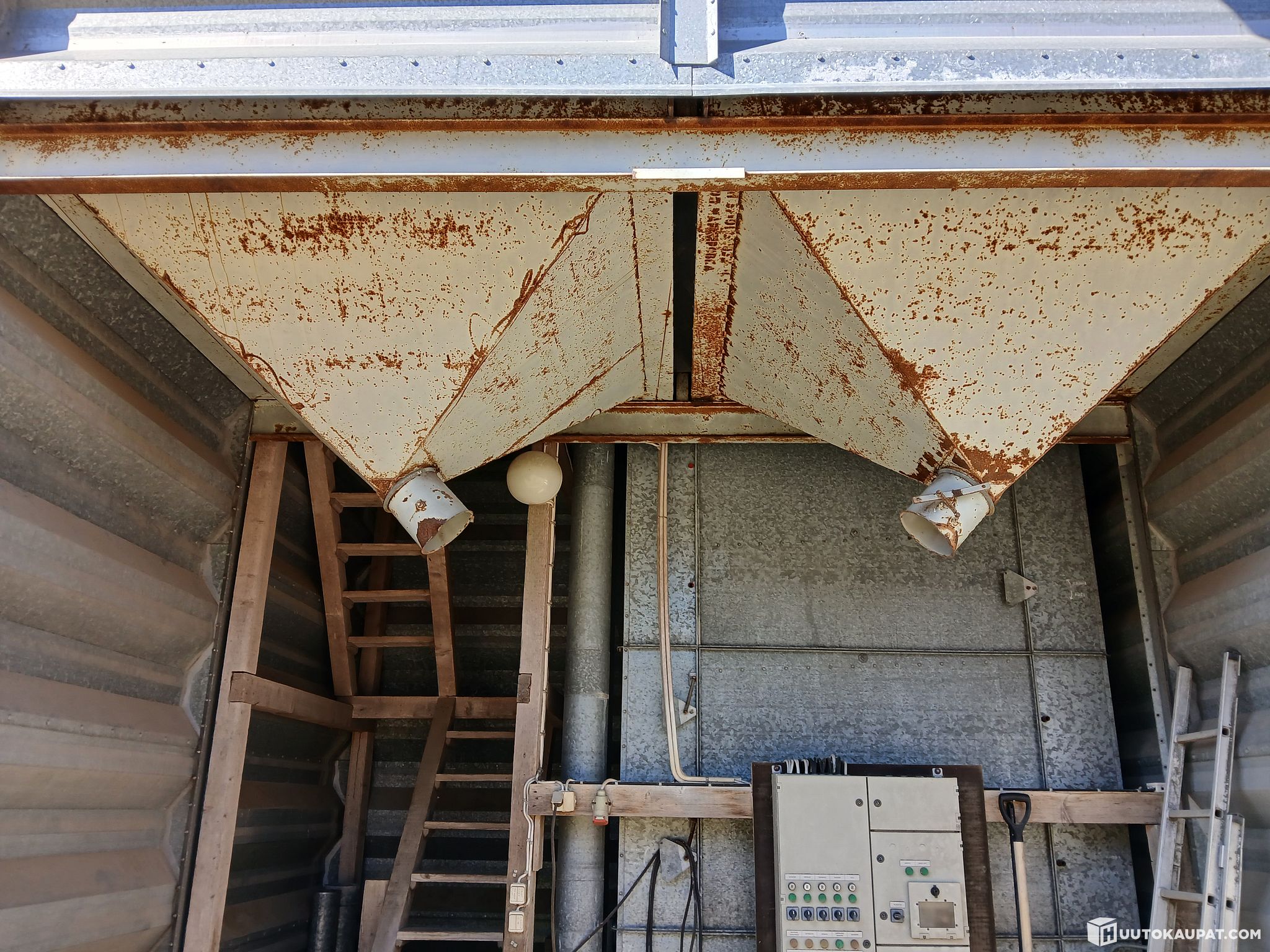 A few small rust holes in the bottom cone of one silo.