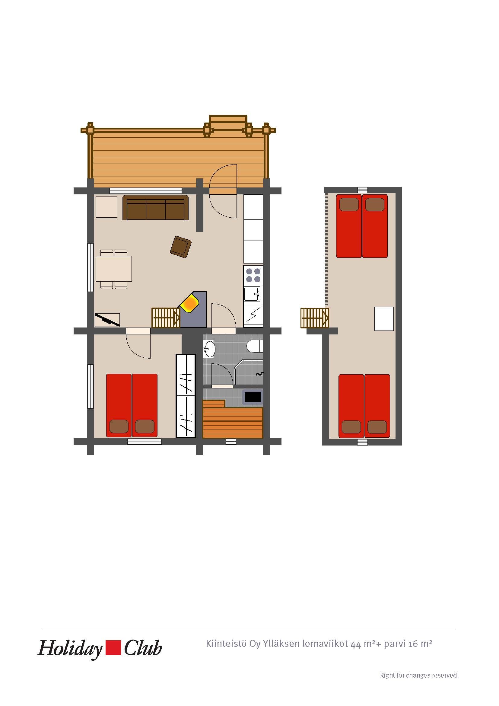 Ki Oy Kolarin Siepakka viikko-osake Äkäslompolossa vko 22, rivitalohuoneisto, 2 + 2 henkeä, 35 m2, tupakeittiö, parvi, Kolari