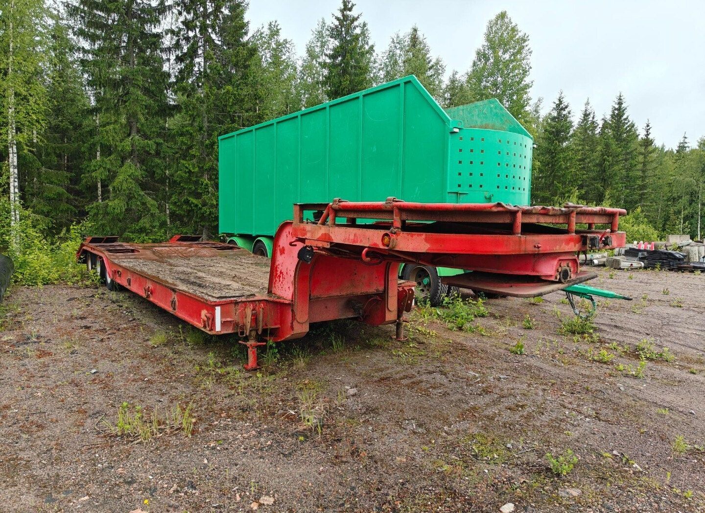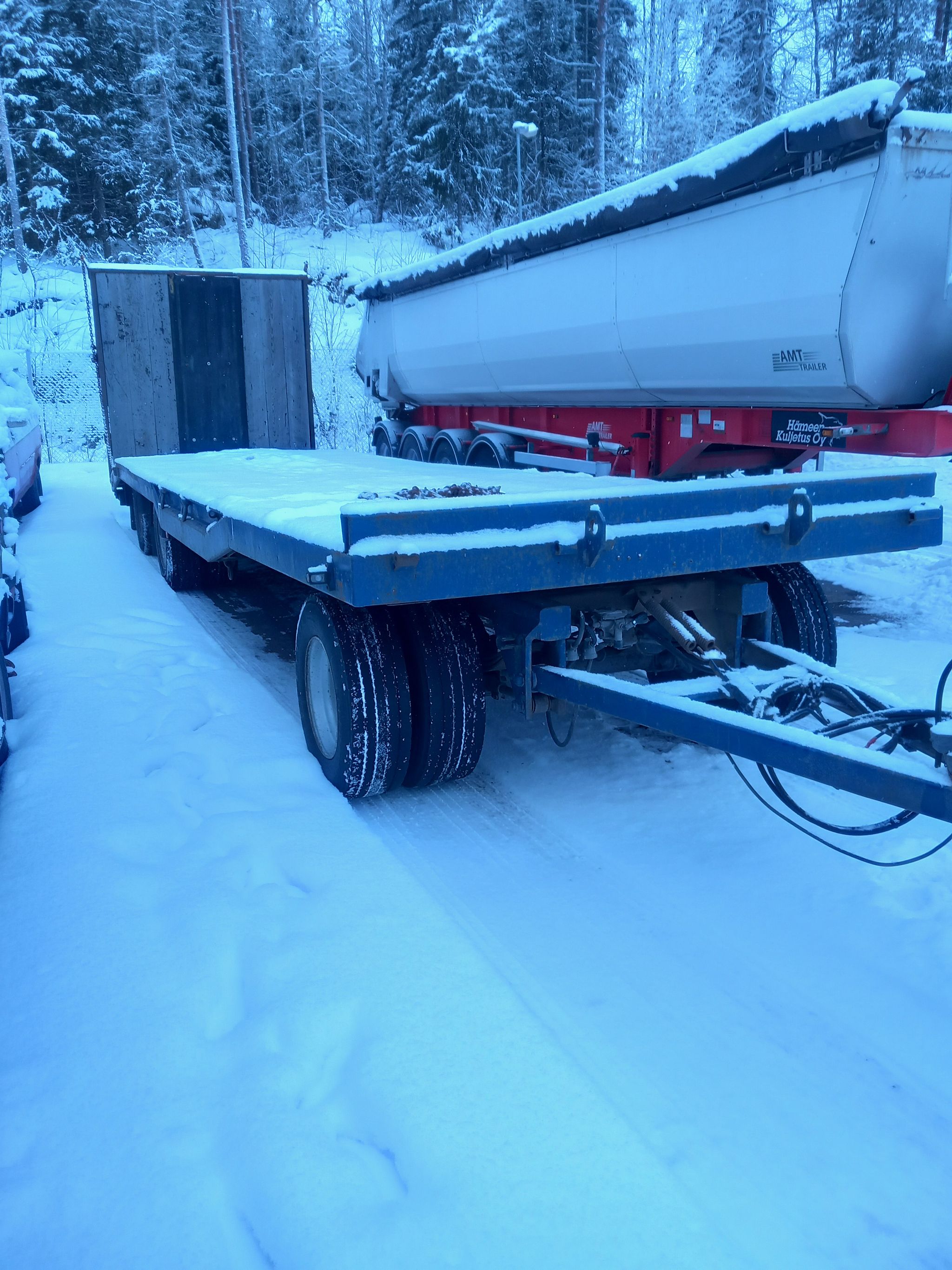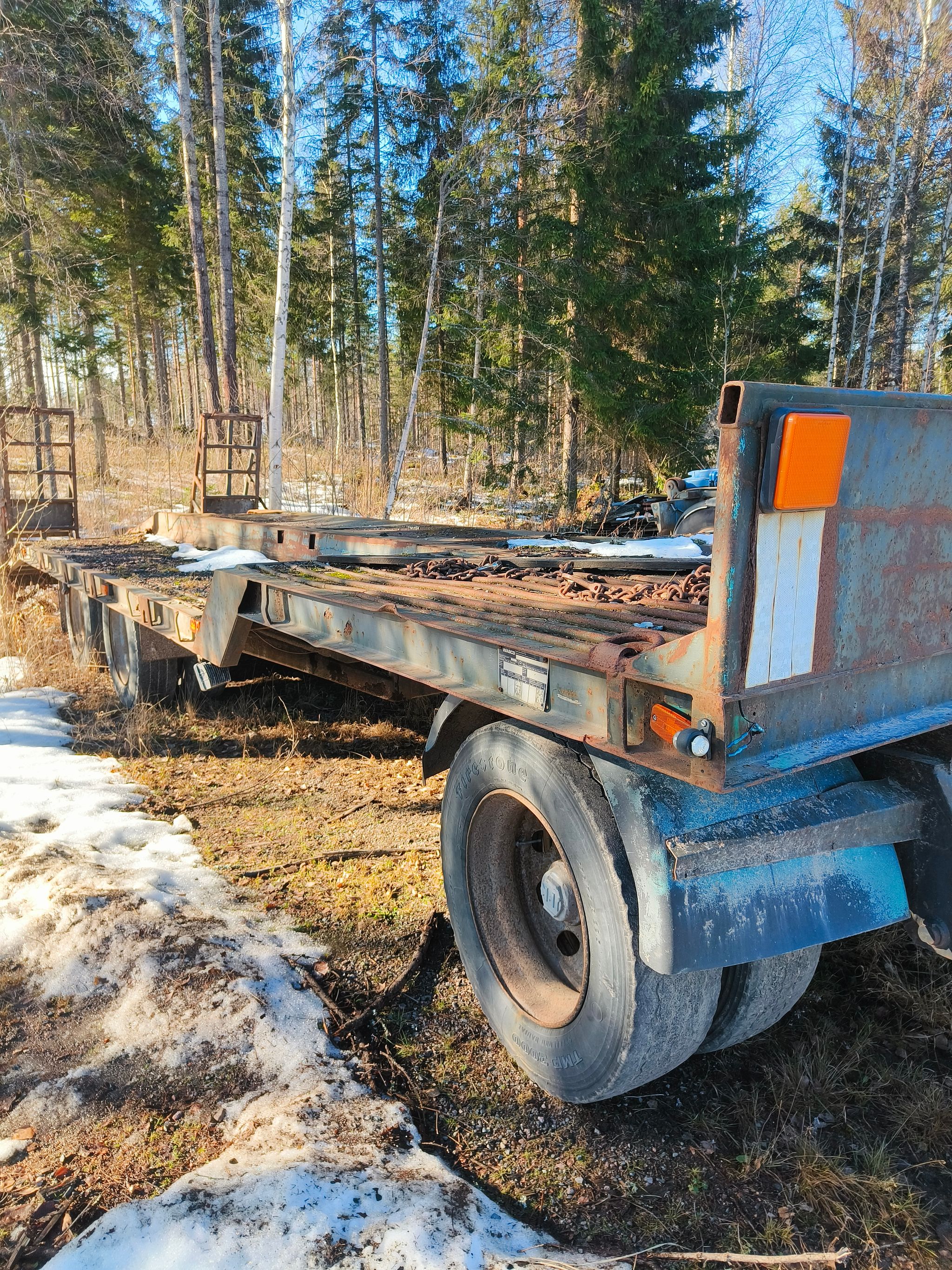 Myydään 3 akselinen tasakantinen lavetti tasainen osuus n.8800mm luiska n.1300mm loiva hydraulinen ramppi.Kantavuus noin 22000kg