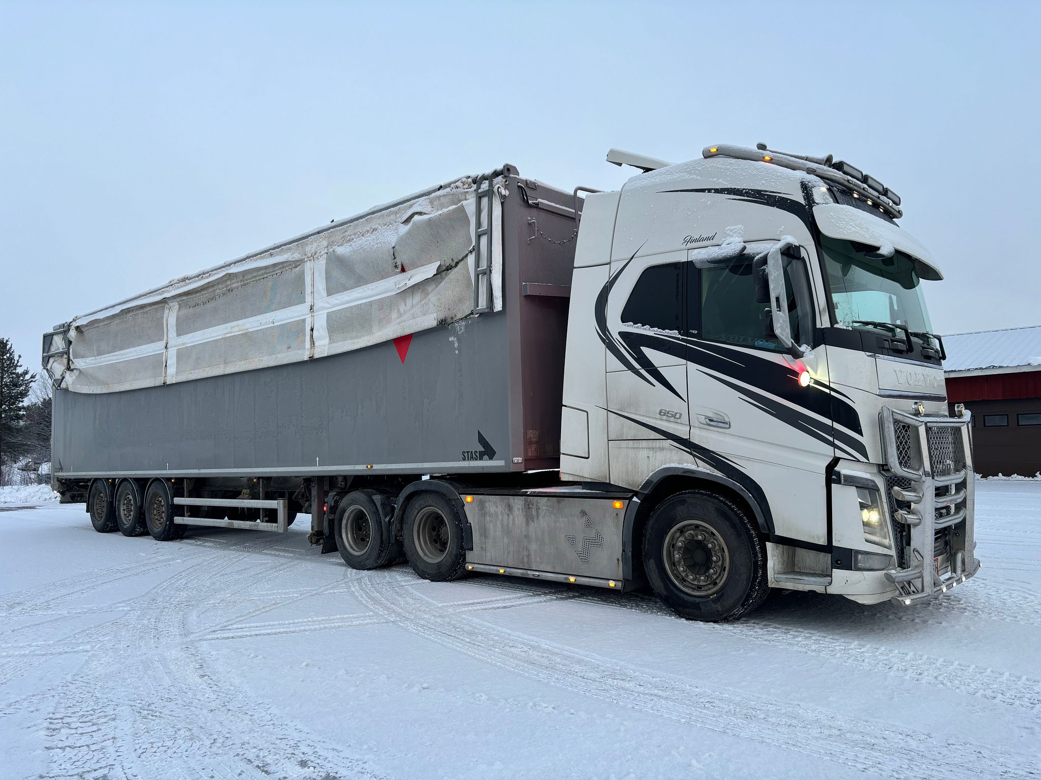 Volvo FH 650 6x2, 2016 puoliperävaunun veto-auto+STAS 300Szx walking floor-puoliperävaunu, Pello