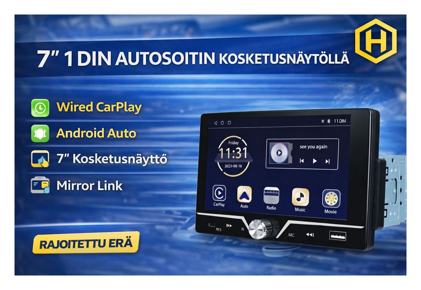 🚗 PIKAHUUTO: 9" Double Din Android Autoradio – GPS, WiFi, BT, FM & USB, Hämeenlinna
