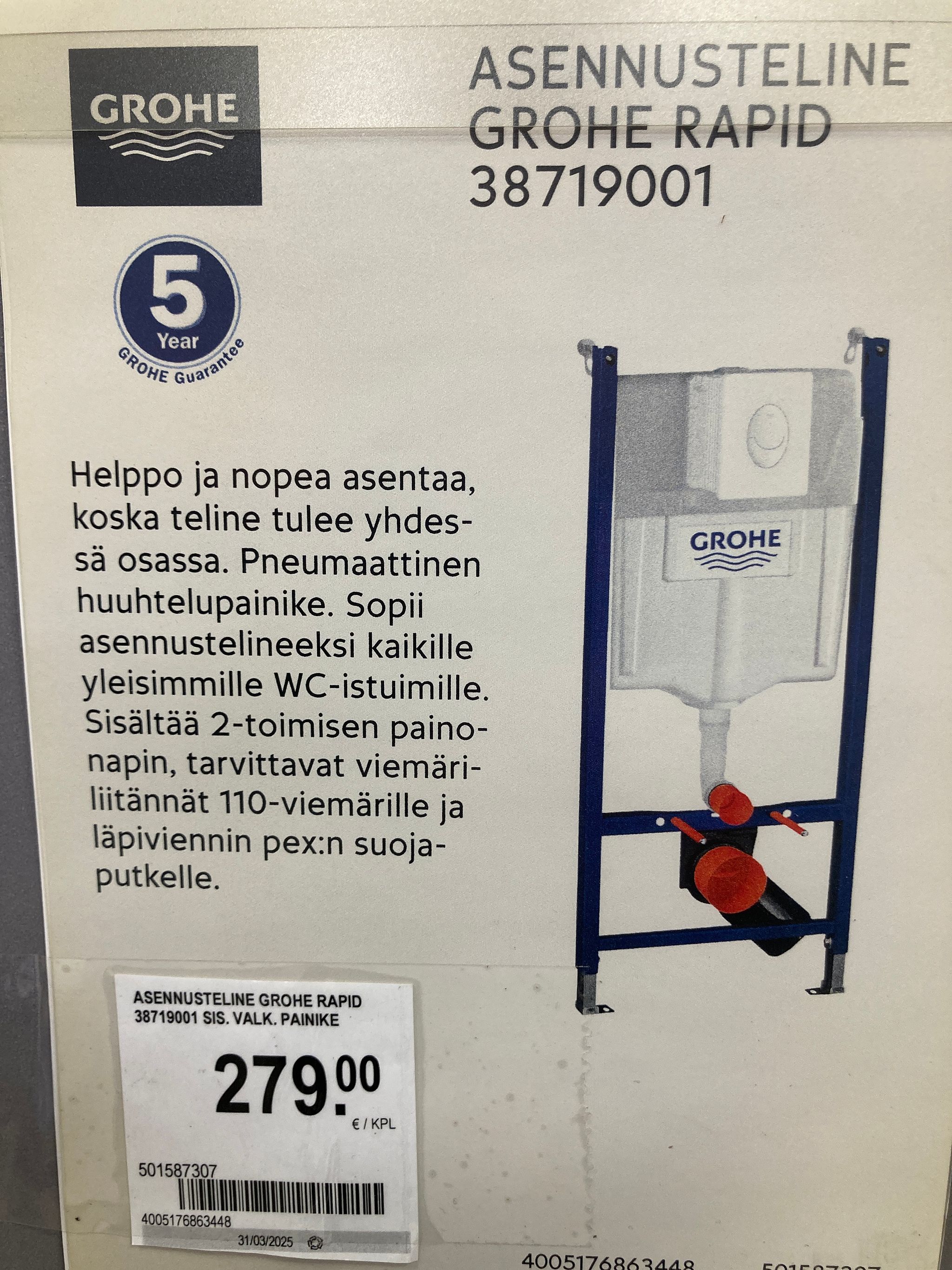 Seinä-WC asennusteline Grohe Rapid, Mäntsälä