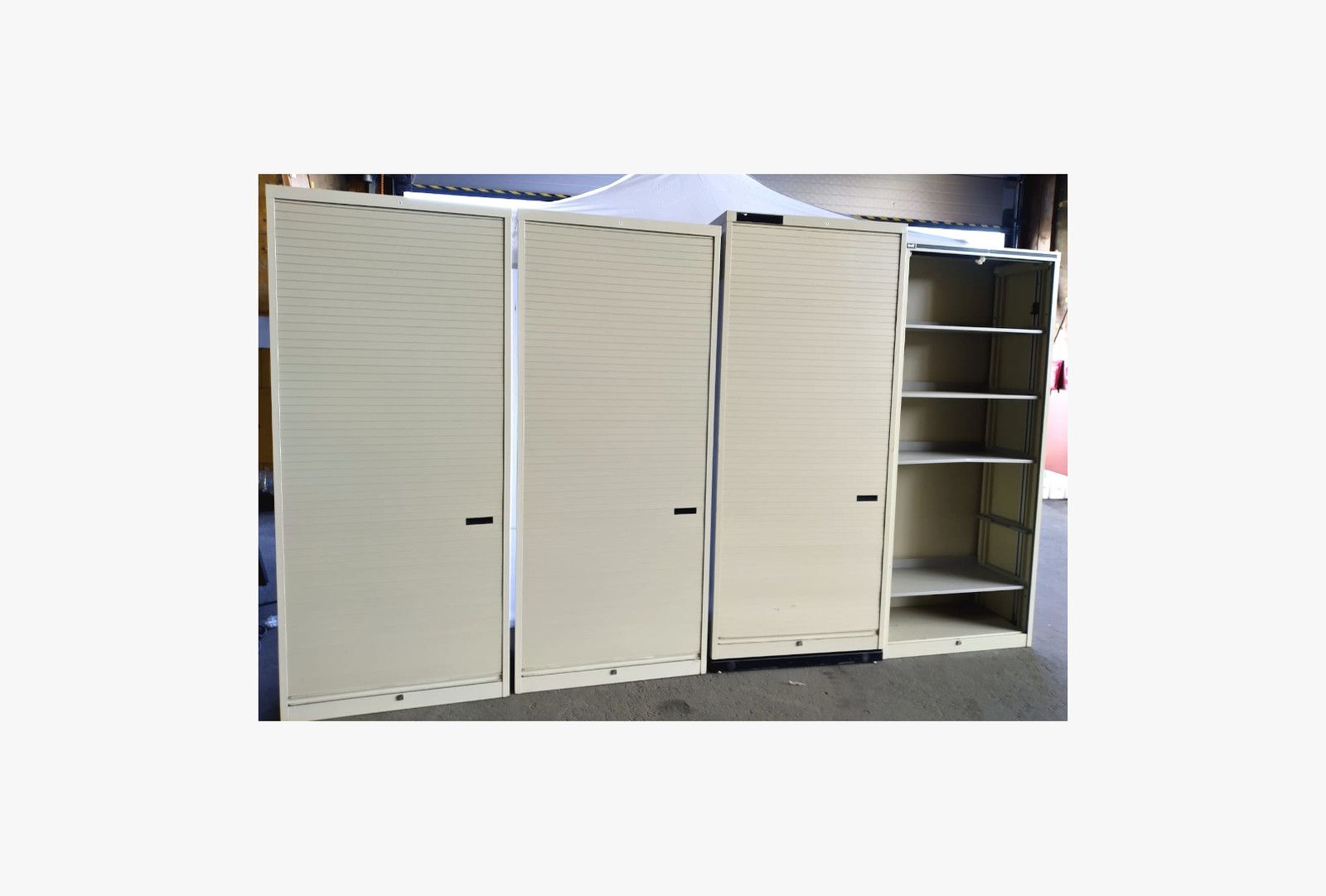 Käytännölliset metallikaapit (teräskaapit) rulo-ovilla esim. toimistoon, verstaalle, autotalliin, 4 kpl (CARTER PARRATT) (30302), Hämeenlinna
