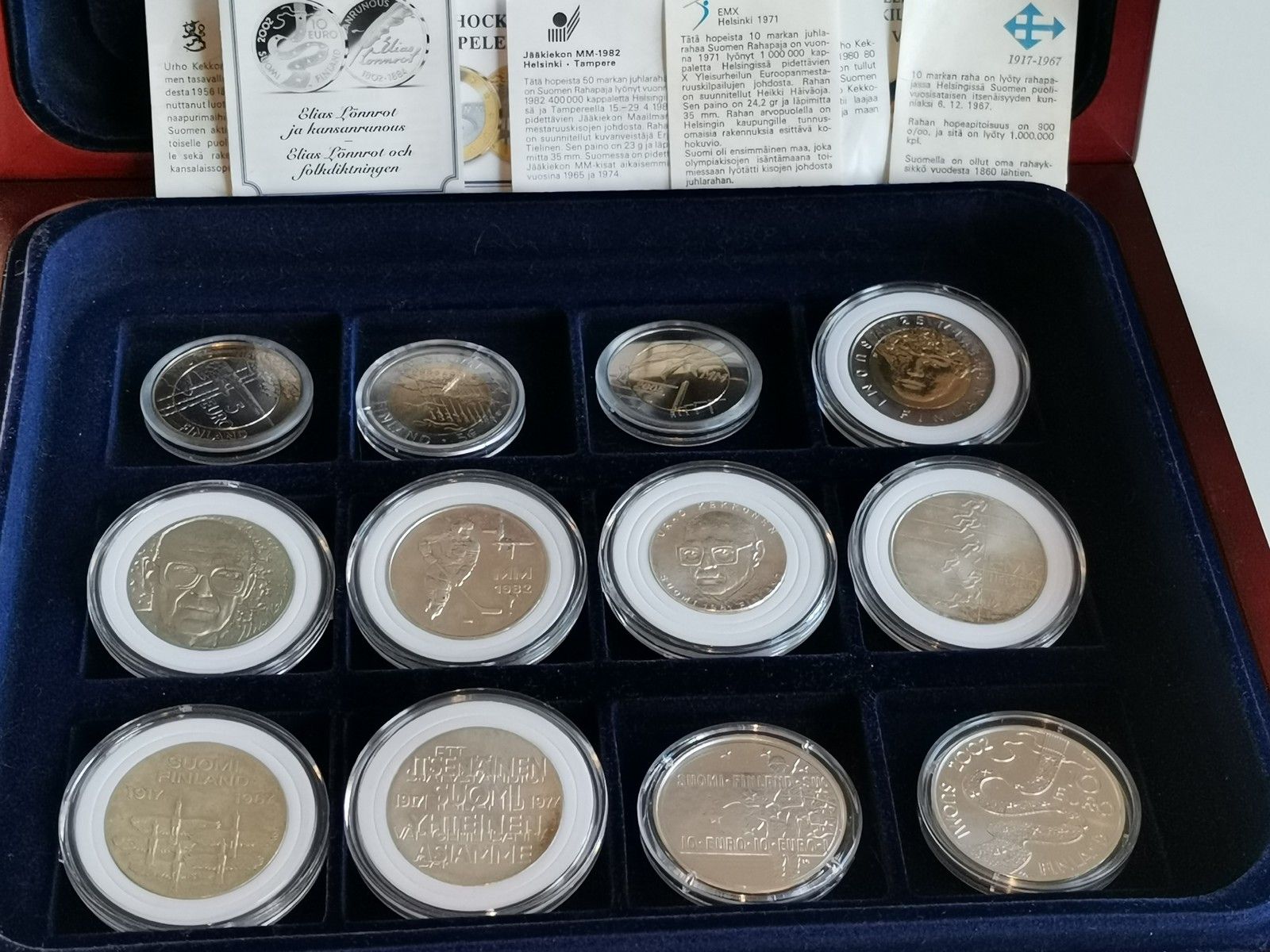 Suomalaiset juhlarahat 12kpl mahonkilaatikossa, Lapinlahti