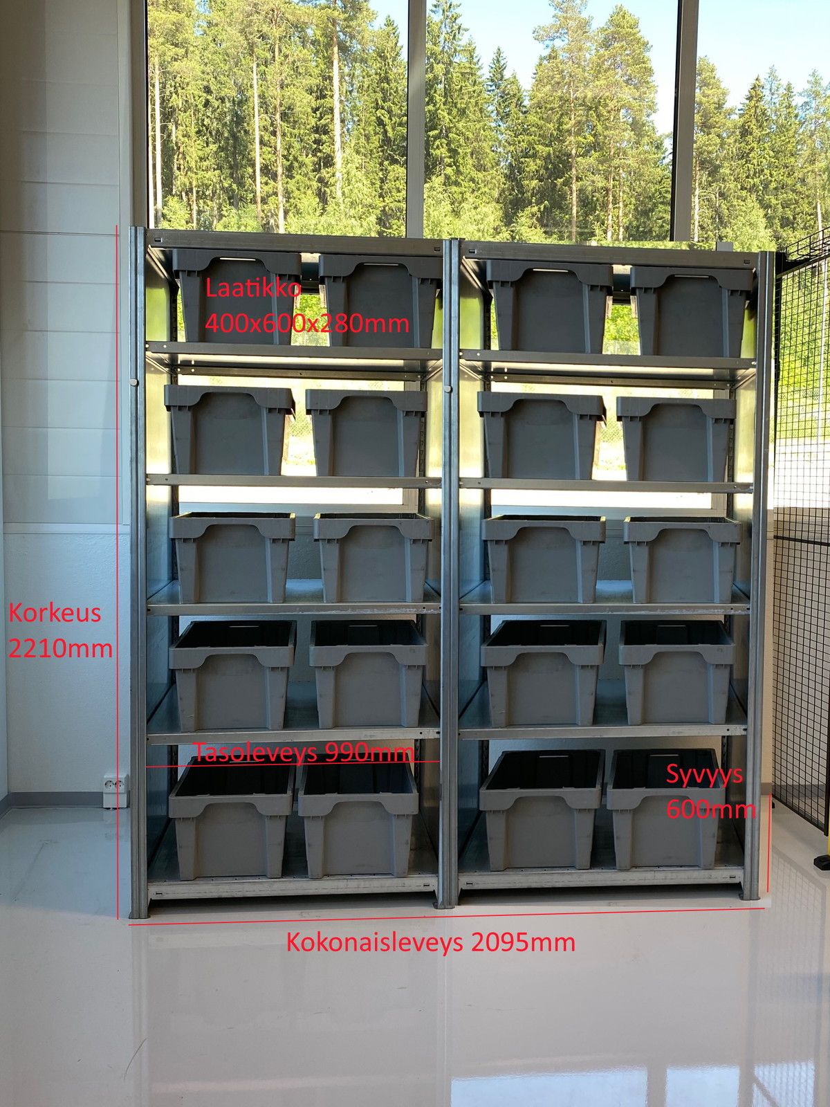 Käytetty raskas varastohylly laatikoilla, Lahti