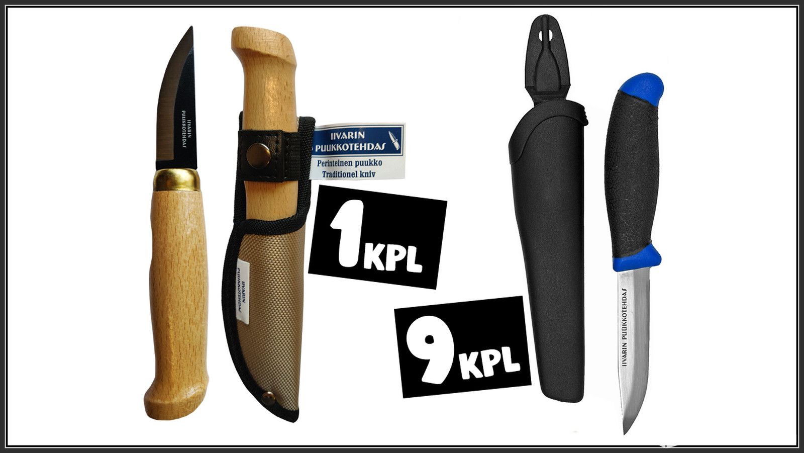 Iivarin puukkotehtaan LAADUKAS PUUKKOSETTI - 10 kpl (PR), Vihti