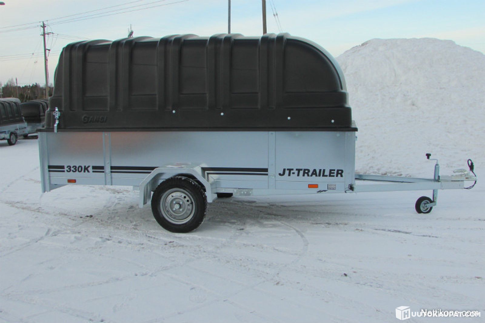 JT-TRAILER 330K KUOMUPERÄVAUNU, UUSI, ERIKOISKORKEAT 50 CM LAIDAT, TAKUU 3, HETI KOUKKUUN, lavakoko 3300*1500, kuomu 1M, laitakorkeus 50. VAIKKA KELKKAVAUNUKSI, Lahti