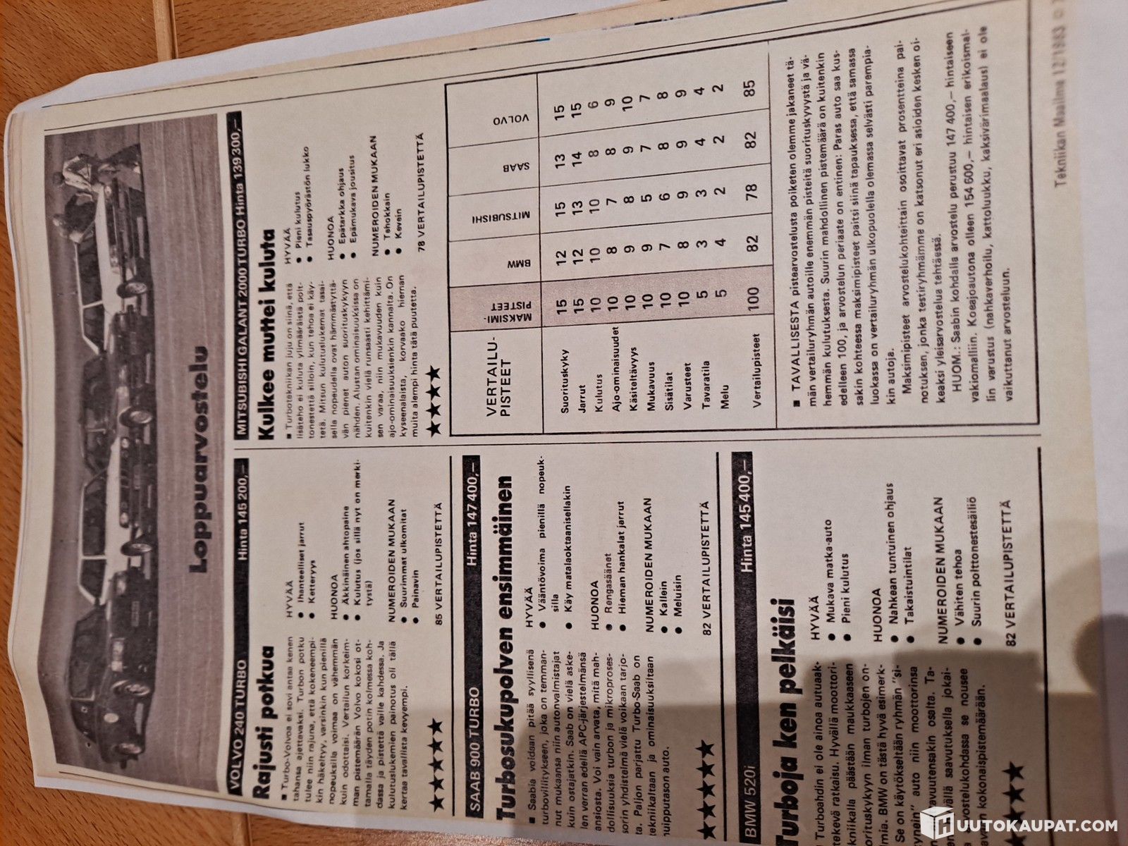 Nyt tarjoamme huudettavaksi vuosimallin 1983 Volvo 240 turbo Ic. Auto luovuttettin torstaina 14.10.1982 Linköpingilaiselle kiinteistövälittäjälle myyjänä oli paikallinen Volvo kauppias Tage Rejmes Bil. Vuonna 1990 auto palautui samaan liikkeeseen vaihdossa josta auton edellinen ja pitkäaikainen omistaja oli auton ostanut. Autolla oli ajettu tuolloin noin 108000km. Ensimmäinen omistaja oli ajellut autolla myös hiekkateitä ja maalipintaan oli tullut kiveniskemiä joten uusi omistaja päätti tehdä täydellisen ylimaalauksen kyseisessä Volvo liikkeessä. Uusi omistaja (myös Linköpingistä) oli erittäin kiinnostunut autostaan ja asensi siihen kaikki mahdolliset Volvo R sport lisävarusteet m.m Volvo R Sport urheilulliset penkin päälysteet jotka antavat paremman sivuttaistuen vauhdikkaassa ajossa, myös keskuslukitus sekä varashälytin asennettiin olihan Turbo siihen aikaan yksi halutuimpia (myös varkaiden keskuudessa) autoja. Vaikka 155 hv B21 Turbo moottori oli suurimmalle osalle asiakkaista tarpeeksi tehokas niin Volvon R-sport osasto tarjosi jälkiasennus intercooler sarjan joka virallisesti nosti tehoa 15hv mutta oikeesti se antoi jopa 25-30hv lisätehoa IC paketti asennettiin yhdessä tehopakoputkiston sekä kireämmän nokka akselin kanssa Volvon kilpailuosaston neuvosta myös R sportin alustasarja asennettiin. Edellinen omistaja arvioi että autossa on noin 200 tervettä hevosvoimaa. Hän omisti auton 30 vuotta ja ajeli sillä varovasti noin 42000km vain poutapäivinä ja tasasilla teillä. Hän piti autostaan koko ajan hyvää huolta ja katsasti sen joka kerta samalla katsastusasemalla.