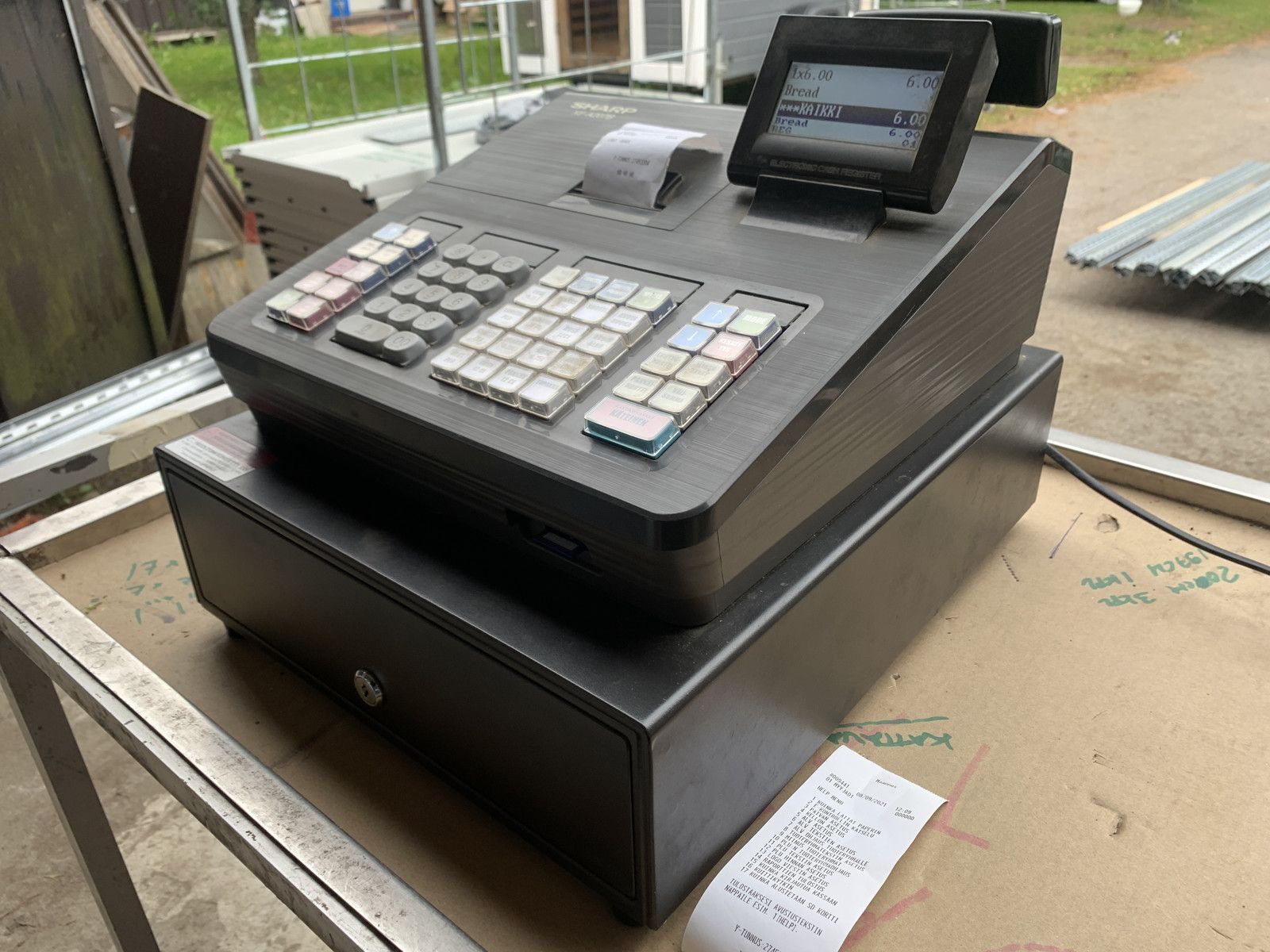 KASSAKONE SHARP XE-A207B (Uutena Edelleen 490€ Alv 0%) + HL ESITETELINEET / MAINOSSTÄNDIT YHT. 12 kpl # Eniten Tarjoavalle # Nouto 0€. Myös Toimitus, Lieto