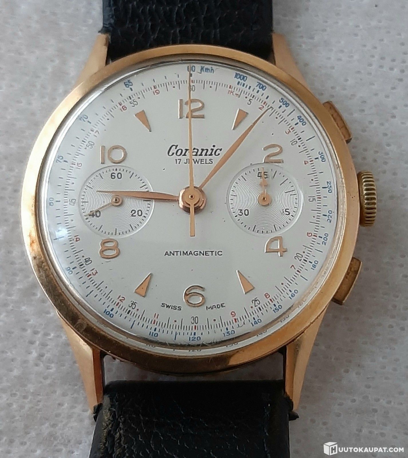 18k ( 750 )Chronograph kulta miesten rannekello 1940 luku . Helsinki, Helsinki