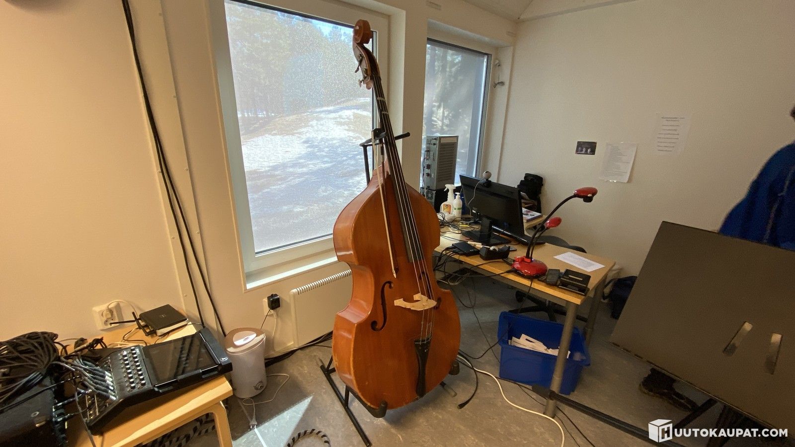 Käytöstä poistuvaa kouluirtainta: Kontrabasso, jousi ja teline, Pyhäjoki