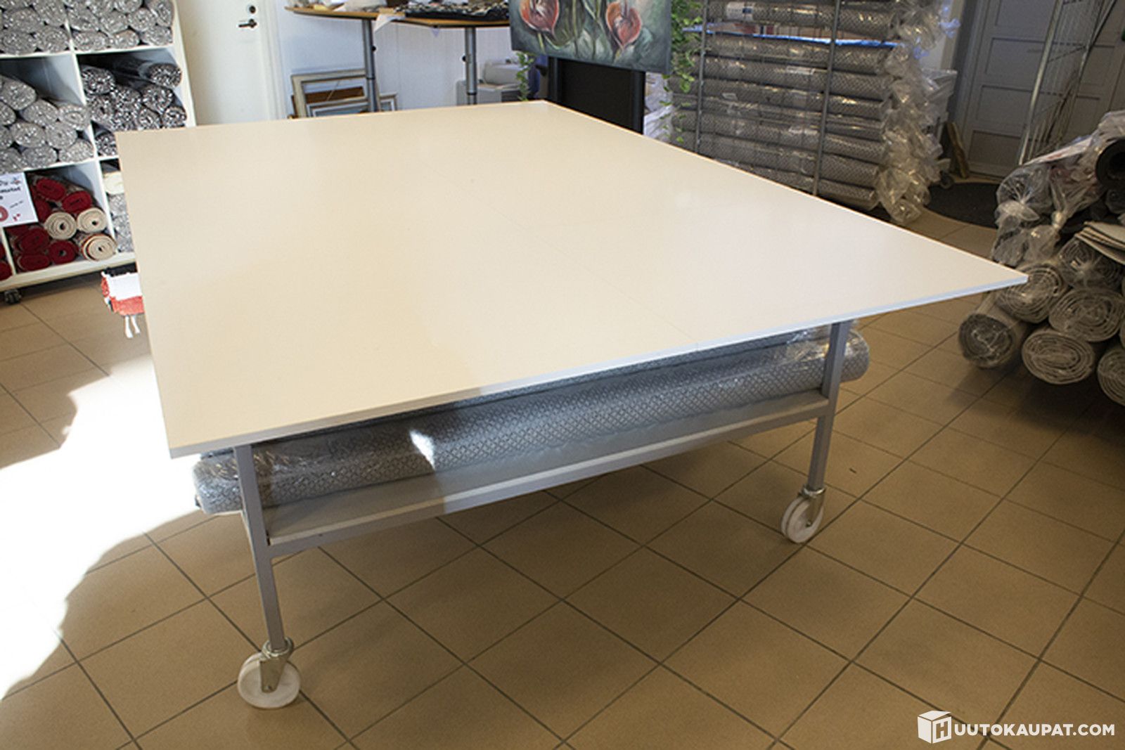 mattopöytä/työpöytä, metallirunkoinen, tukeva, pyörillä (ei sisällä mattoja), Riihimäki