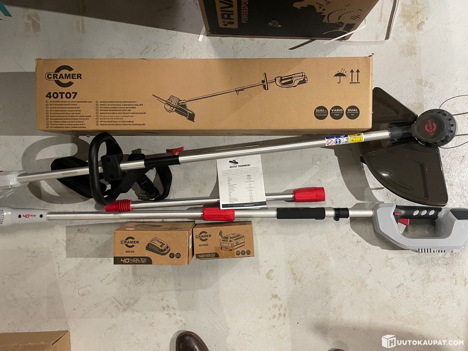 4kpl setti Cramer 40V akkukäyttöinen ruohotrimmeri ja teleskooppi oksasaha akulla + laturilla sh. reilu 500,00€, Mikkeli
