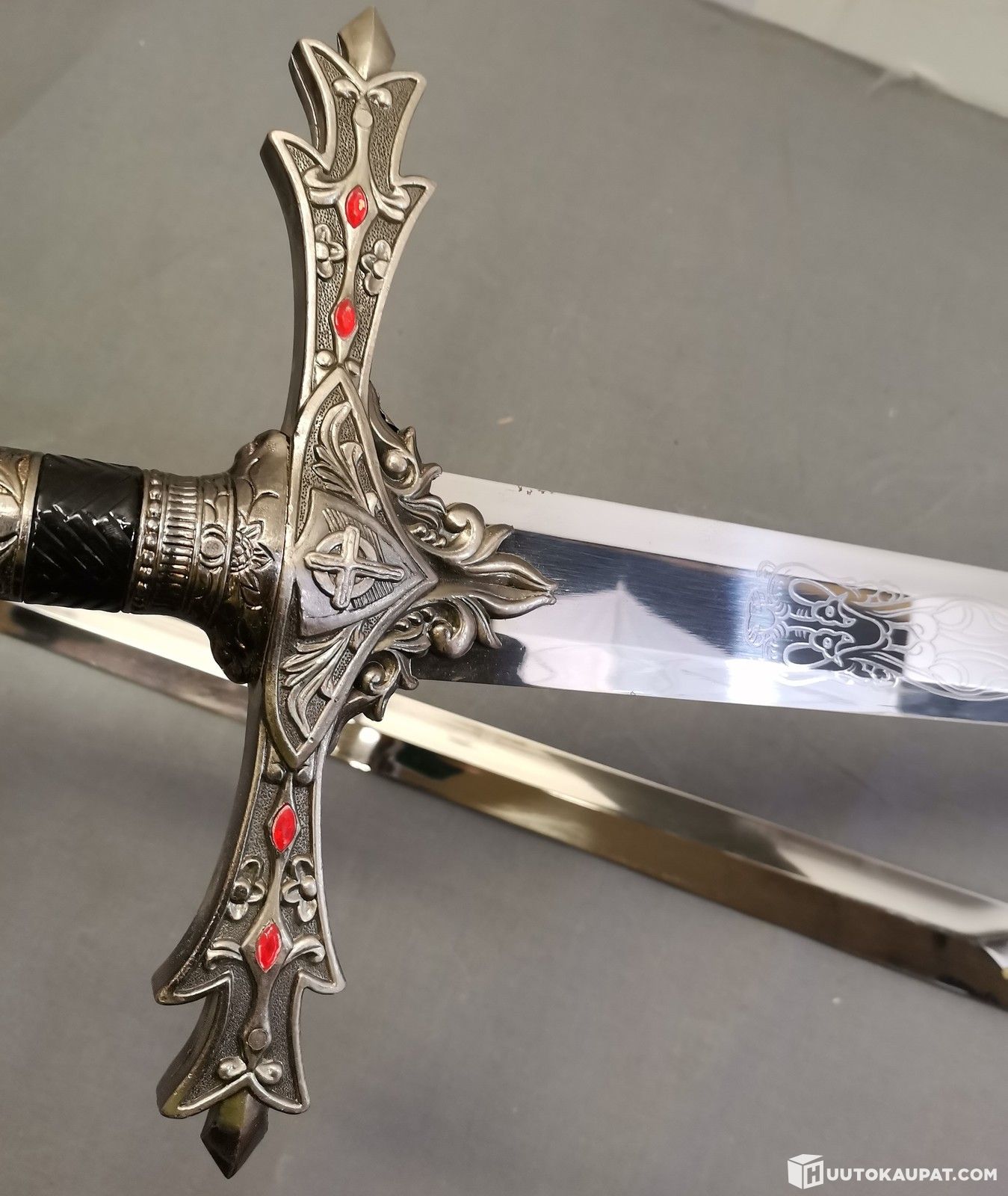 Varaston poistoerä: 2kpl pitkät ja näyttävät koristemiekat 120cm ja 113cm seinätelineissä (RK), Isokyrö