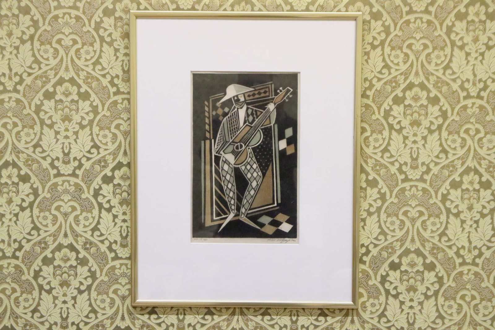 Toimi Kiviharju: signeerattu väri-puupiirros "Harlekiini", 1962. TDT751, Riihimäki