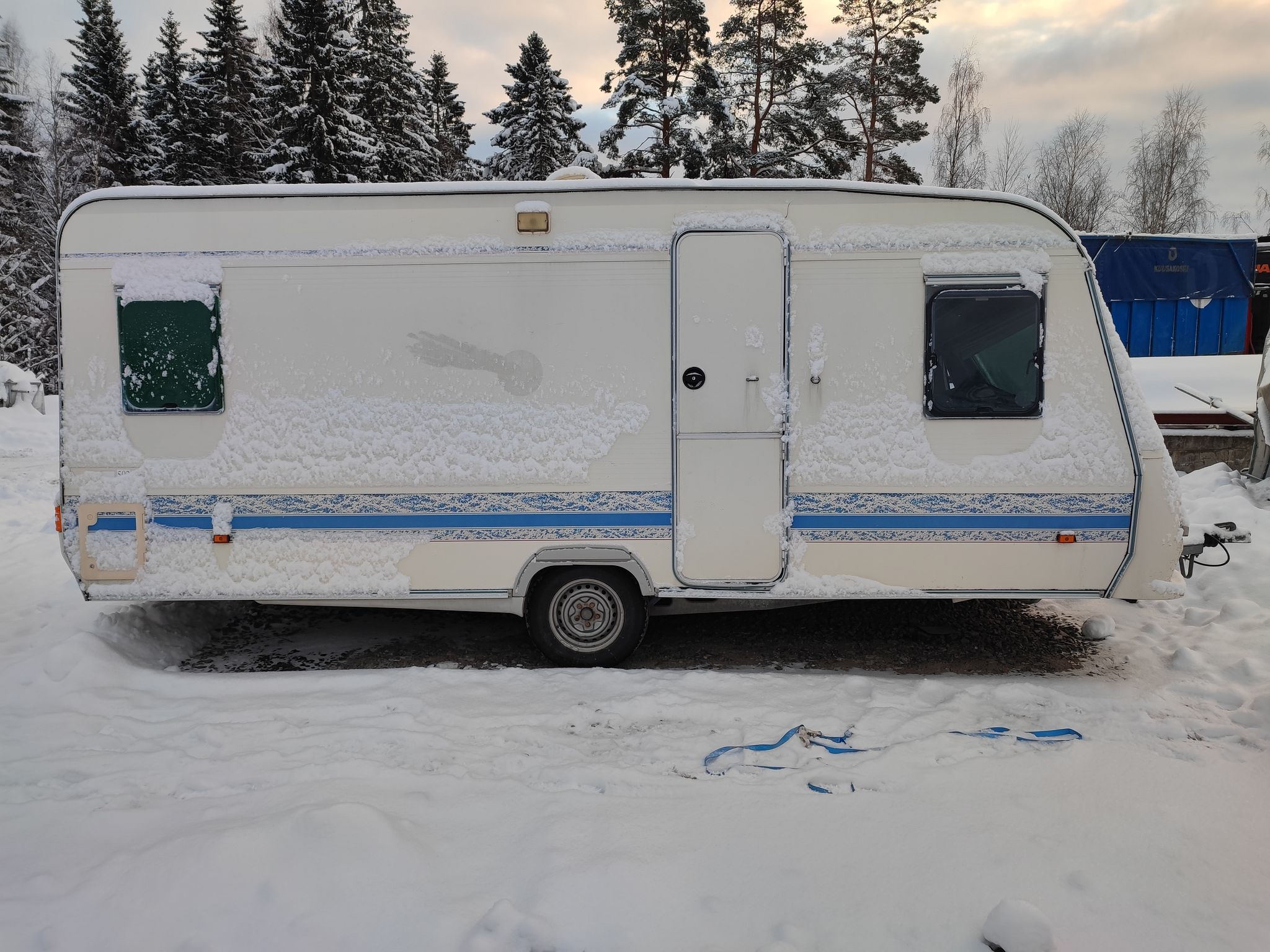 Romahtaneen pressutallin runtelema asuntovaunu Adria 502UP, Mikkeli