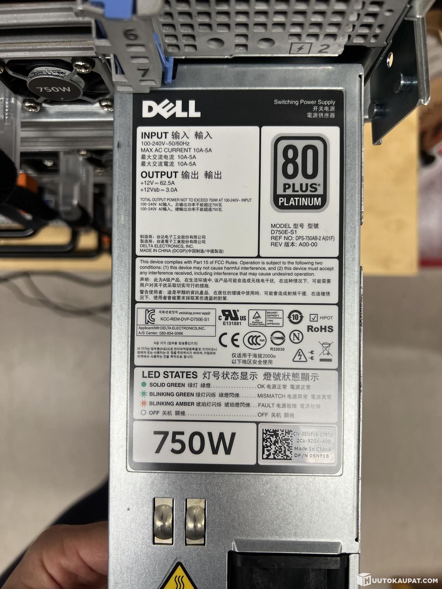 2kpl 750W 80 Plus Platinum hyötysuhteella = 10 virtalähdettä yhteensä.