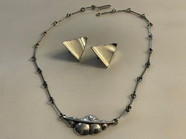 Arvo hopea Lapponia BJÖRN WECKSTRÖM, kaulakoru ja korvikset, keräilijän jäämistöä, Kauhajoki