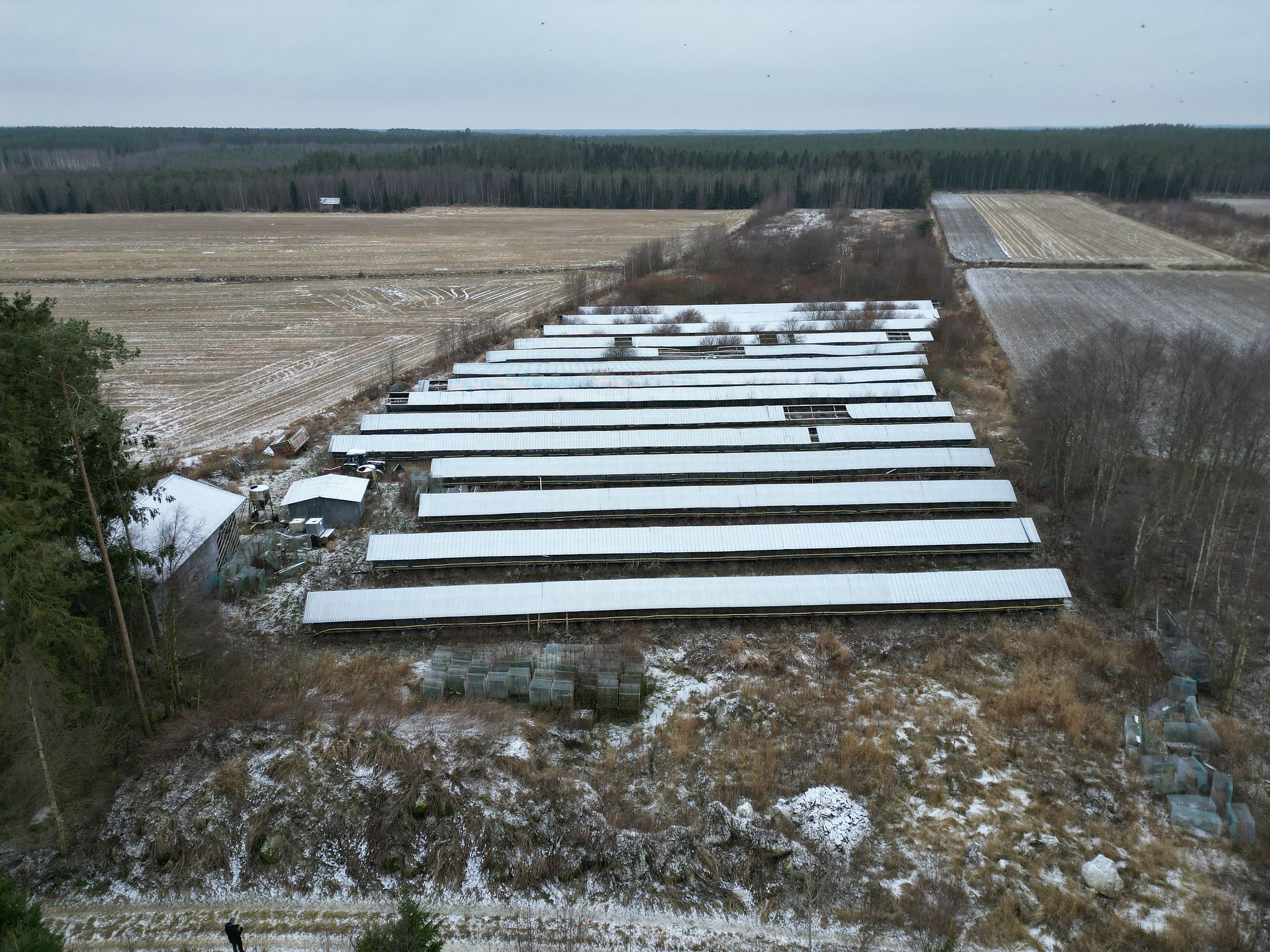 Ulosmitattu turkistarha rakennuksineen ja metsää Kauhavalla / Utmätt pälsdjursfarm med byggnader och skog i Kauhava, Kauhava