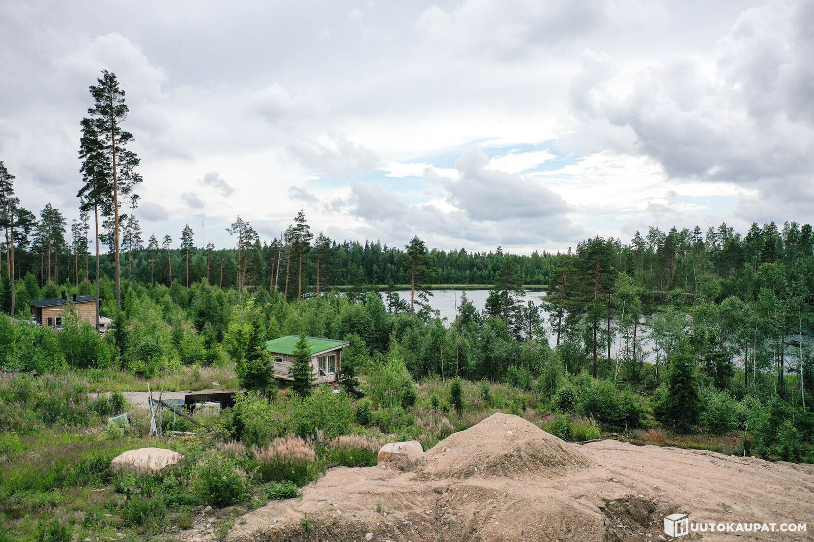 Mahdollisuuksien rakennuspaikka järven rannalta. Rakennustyöt on jo aloitettu ja saunarakennus on osittain tehtynä. Haetaan jatkajaa. Päärakennukselle on aloitettu pohjatyöt. Rakennuspiirrustukset on valmiina. Kesäksi saunomaan? Toimi nopeasti!