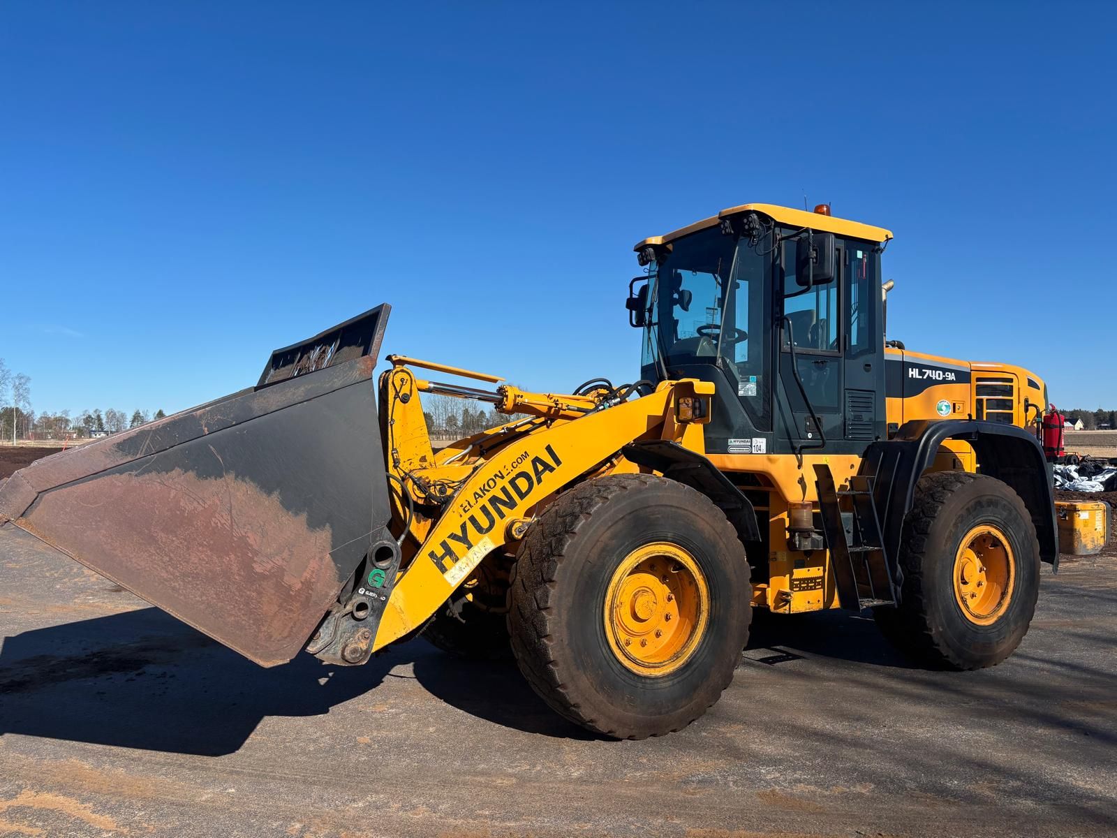 Kauha on kohtuullisen paha ja kauhan tapeissa on väljää, muuten puomisto on hyvä kuntoinen. Sylinterit ei vuoda öljyä ja kaikki toimii muutenkin normaalisti.
