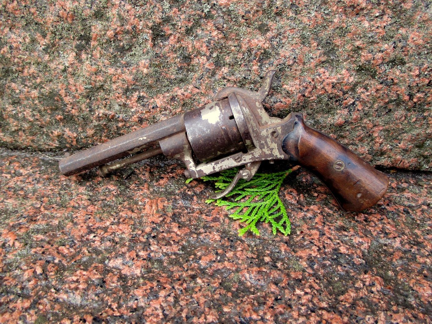 Lupavapaa antiikkiase kuudestilaukeava revolveri ase 1800-luku !!, Vehmaa