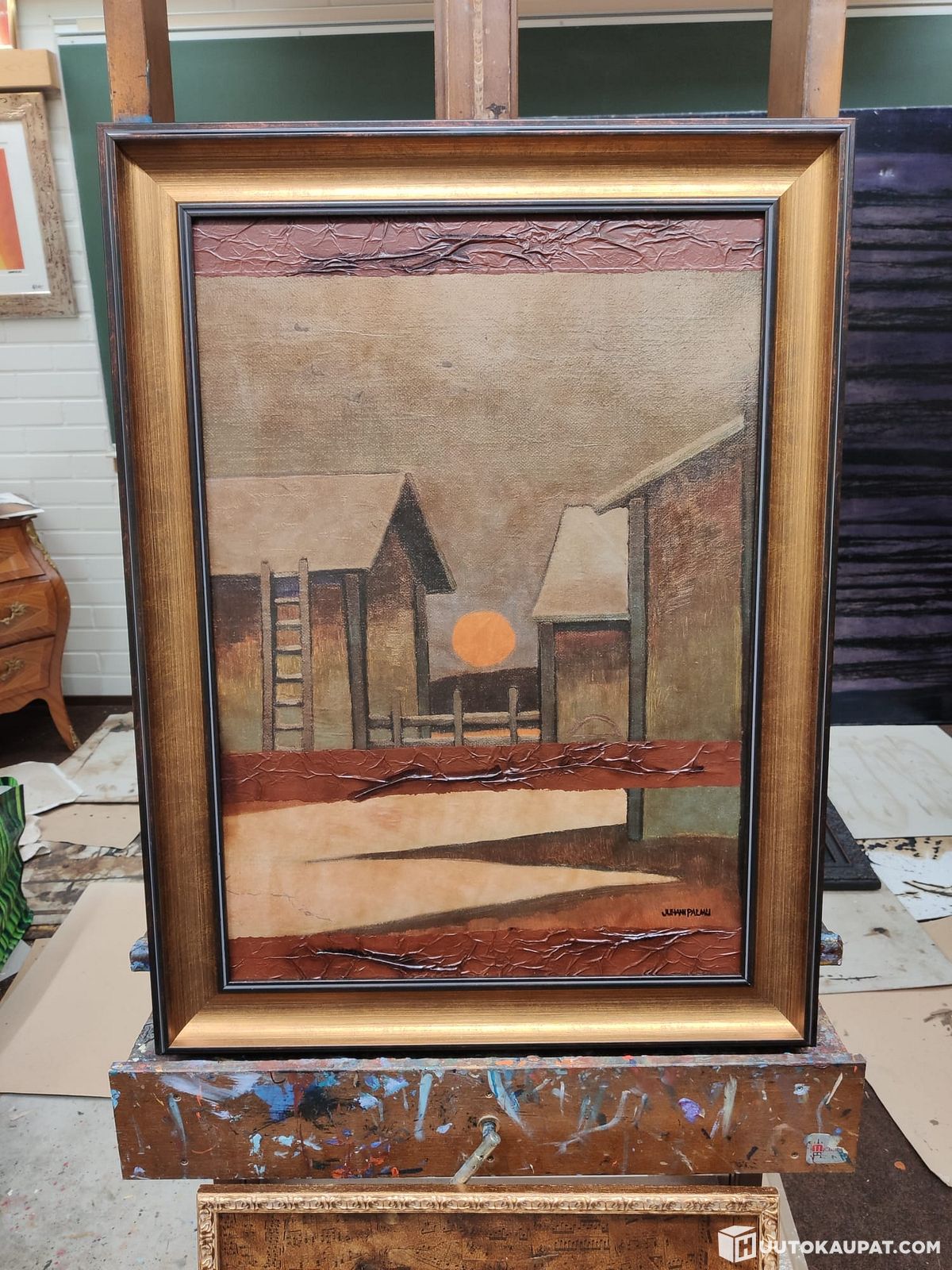 Juhani Palmu - Ammoin sammuneen pihan hiljaisuus - Sekatekniikka taulu, Kauhava