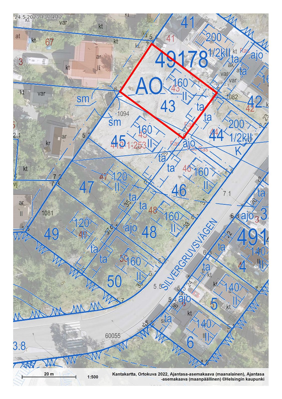 Omakotitalotontti Laajasalon Kaitalahdessa, tontti 49178/43, Hopeakaivoksentie 27, pinta-ala 625 m2, rakennusoikeus 160 k-m2, Helsinki