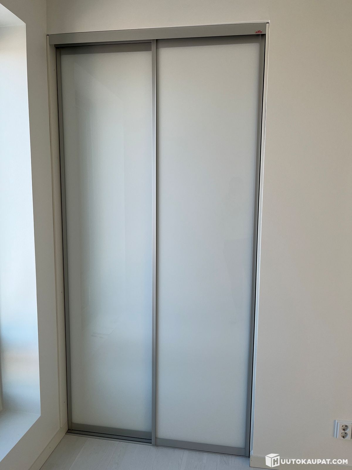 ELFA liukuovet valkoinen lasi, alumiinikehys h233cm x lev.113cm, Tampere